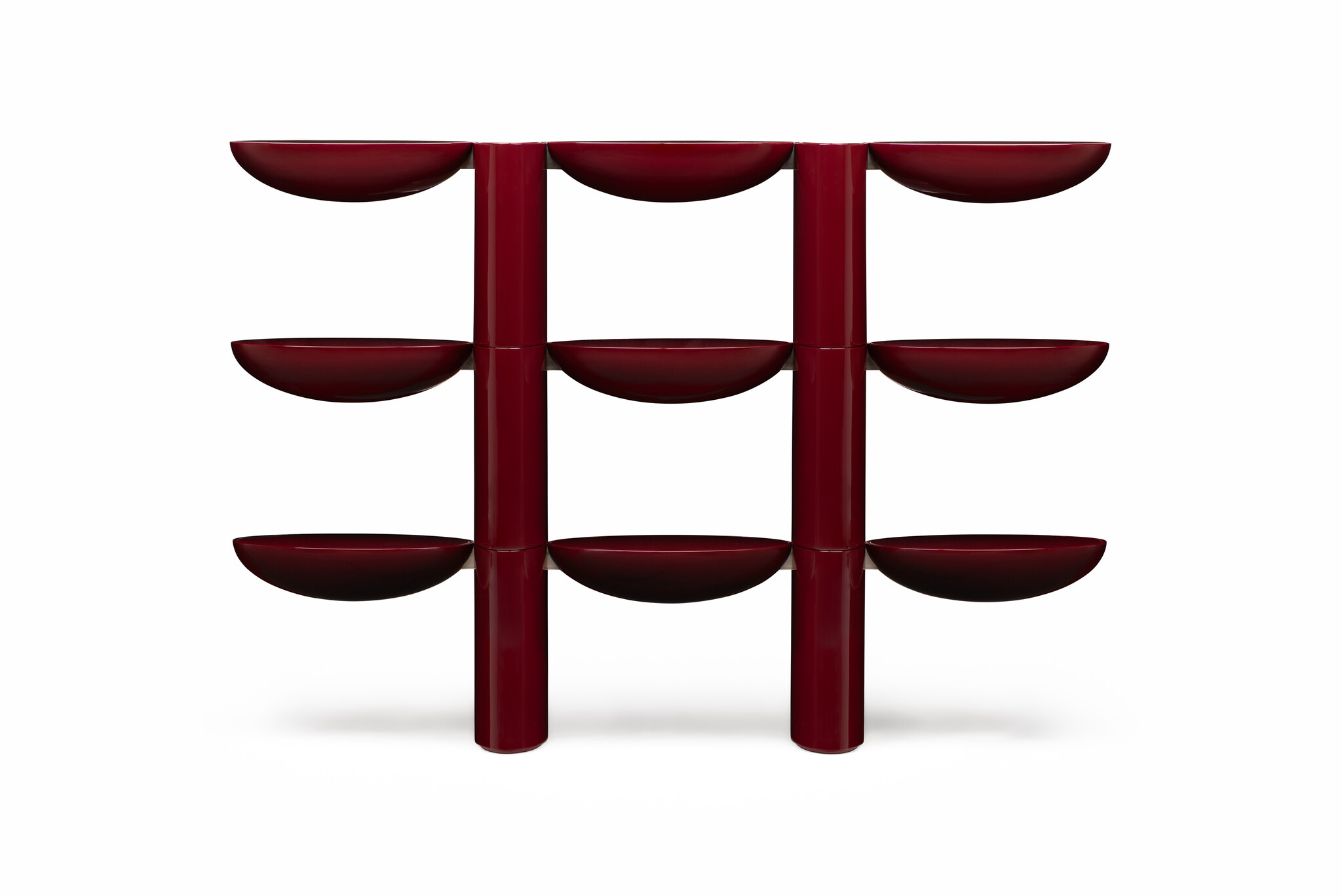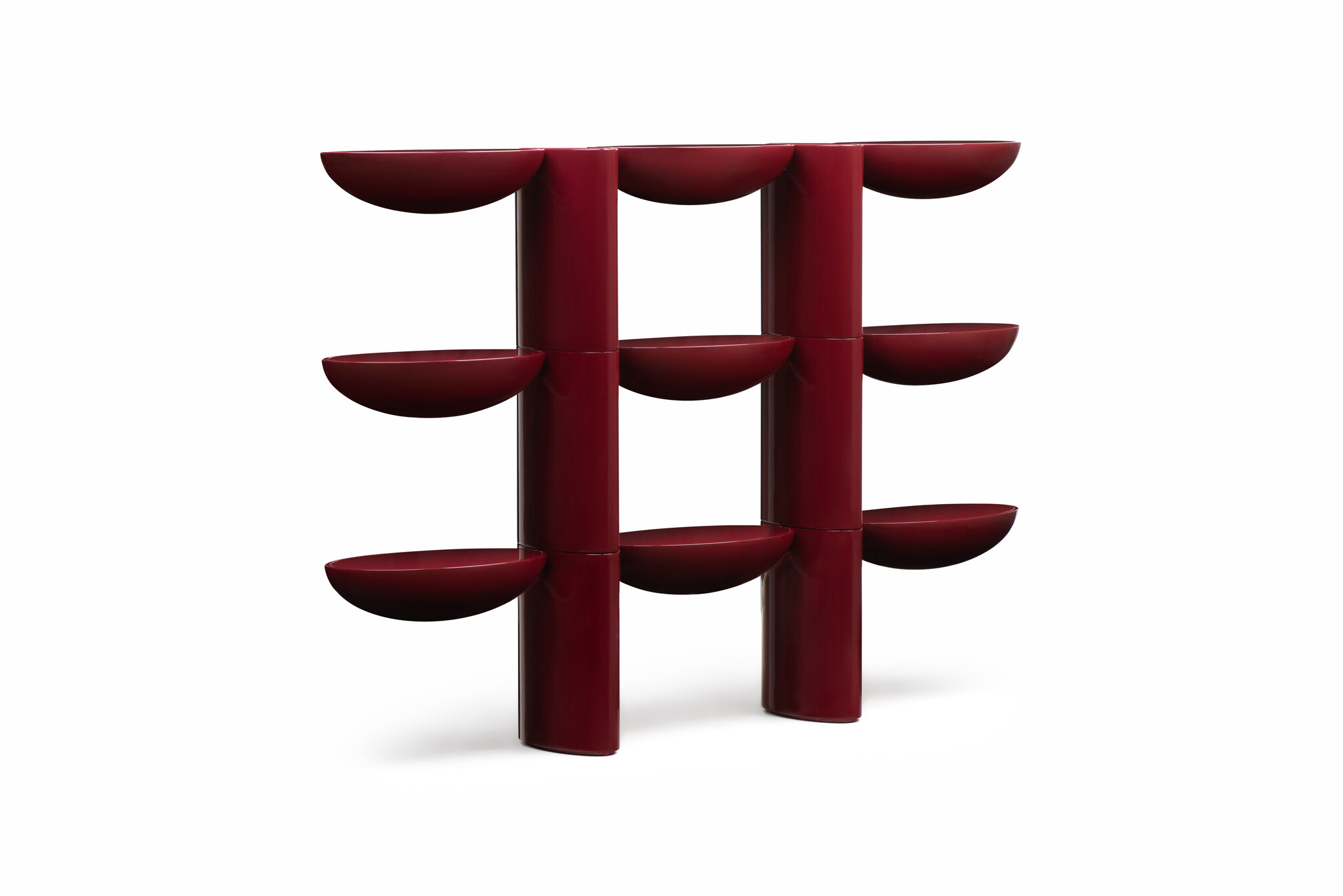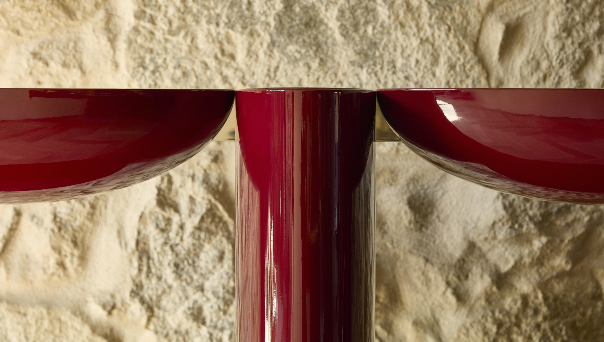 Tai Hen artfully frames spaces and objects with its bold lacquer form. A functional piece with vivid colour and a reflective surface.