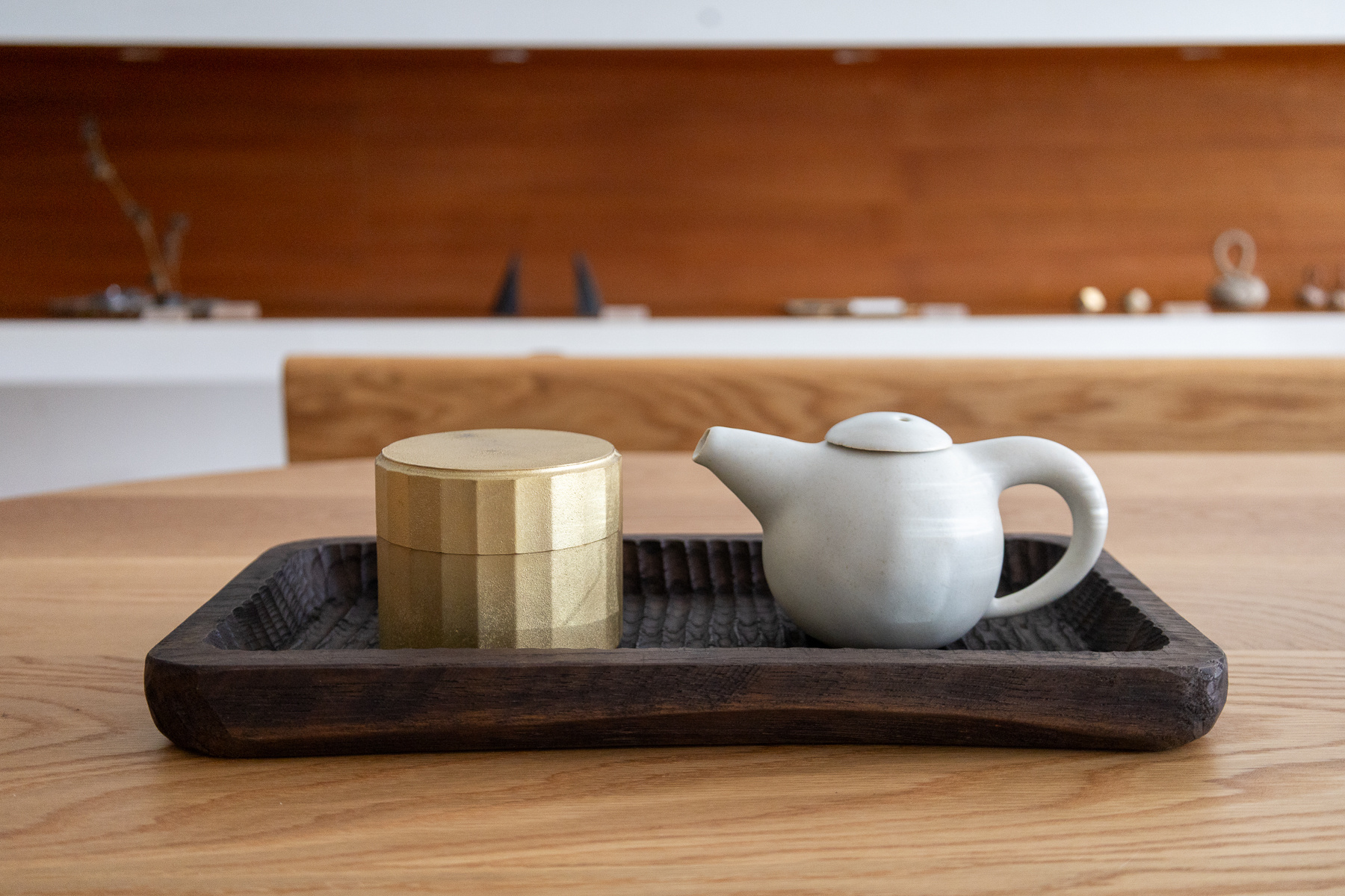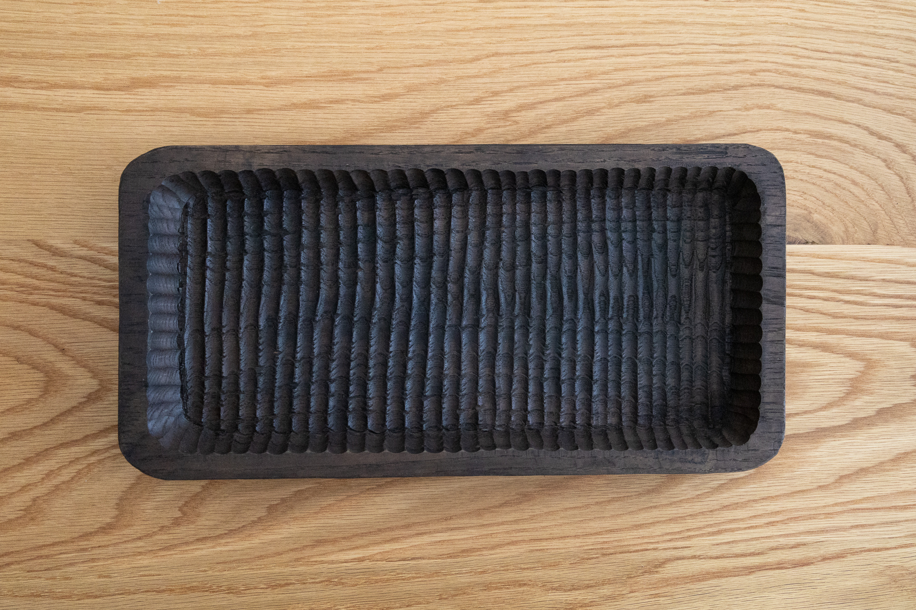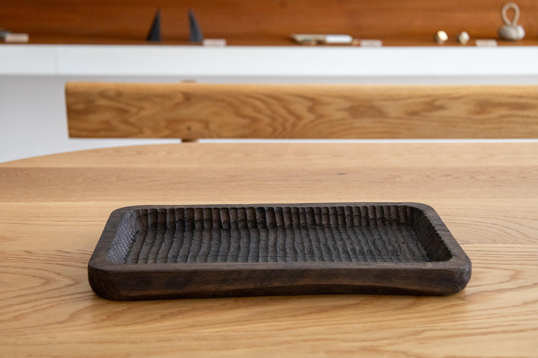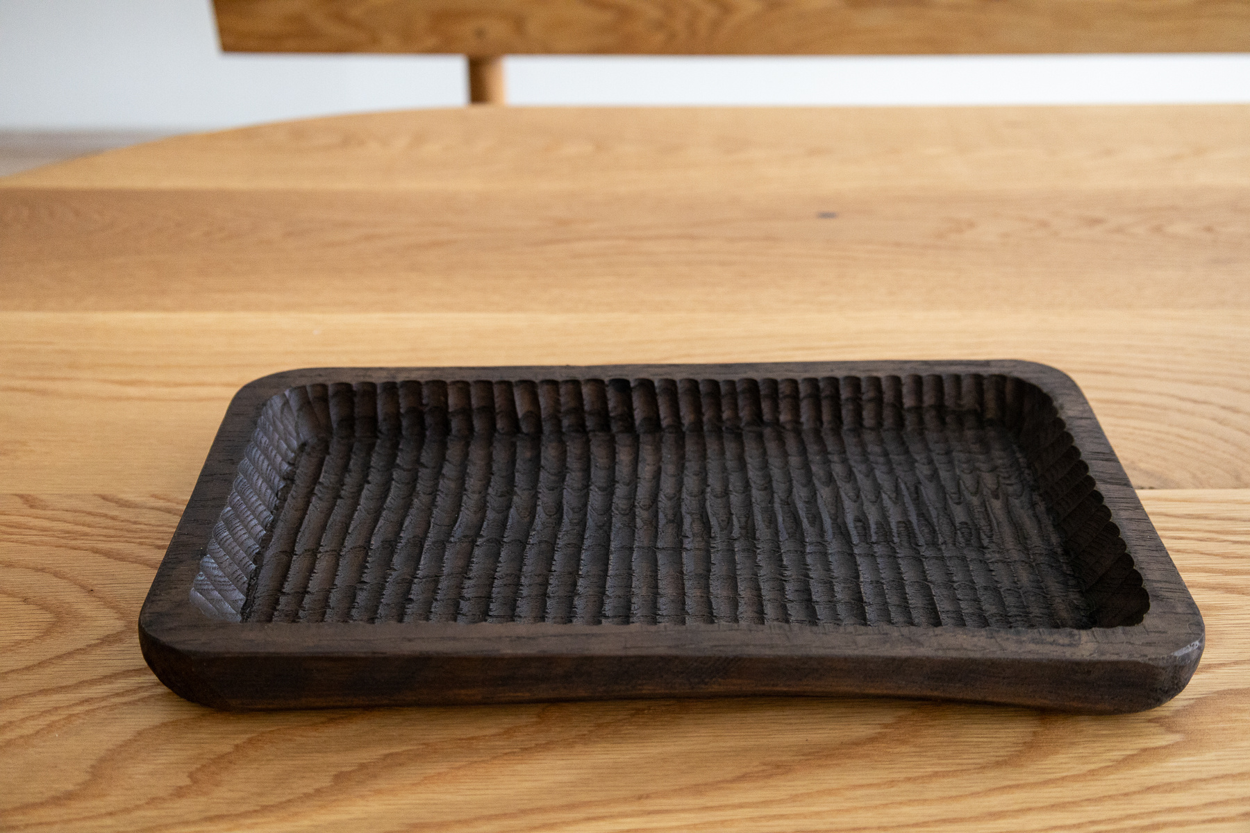 A beautifully carved chestnut tray in its most natural form. These trays were traditionally made by roof-shingle makers in the Village of Wagatani, Ishikawa, Japan. Hence the roof like ridges that adorn the tray.