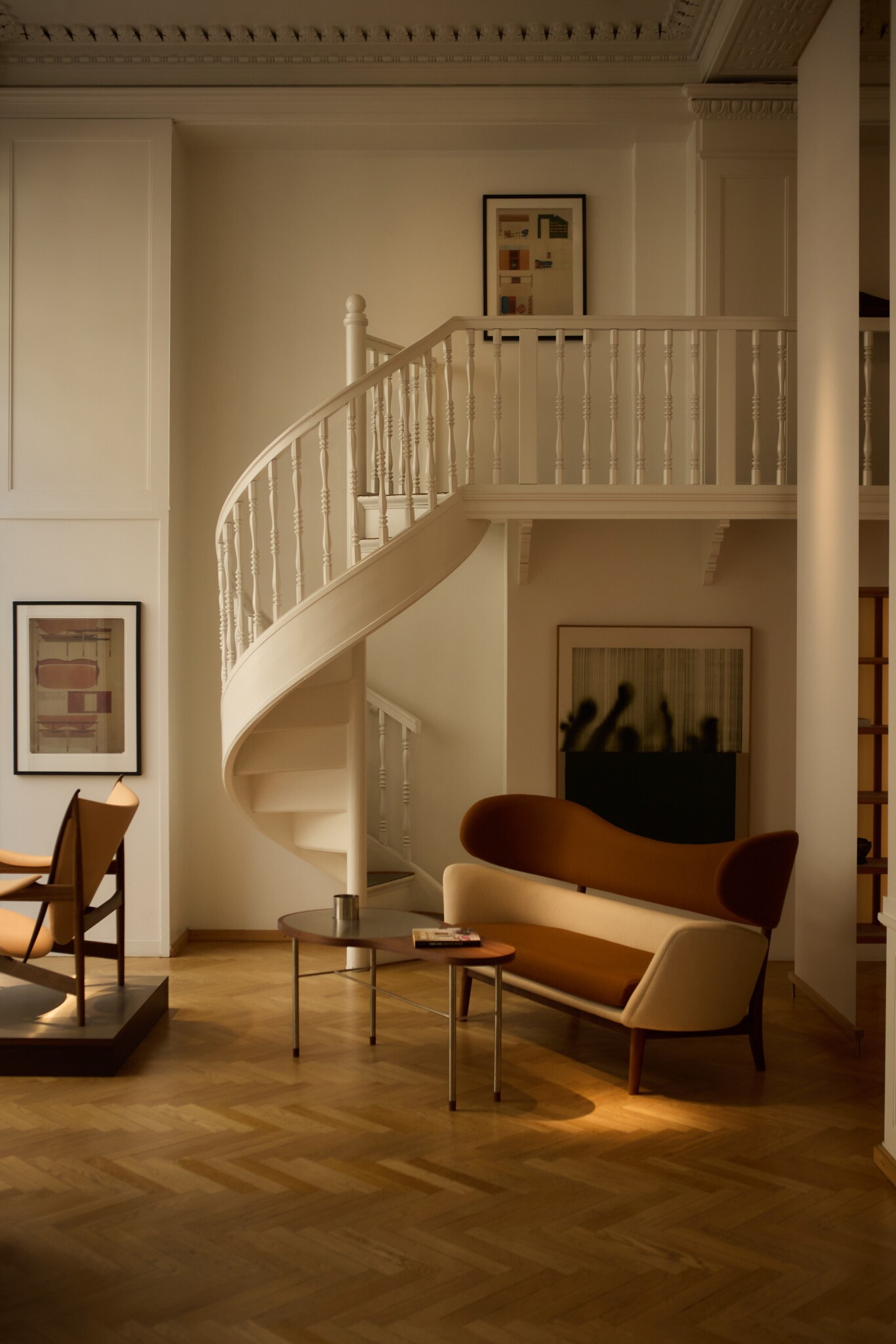 The sculptural Baker Sofa with its two-piece backrest was Finn Juhl’s American debut.