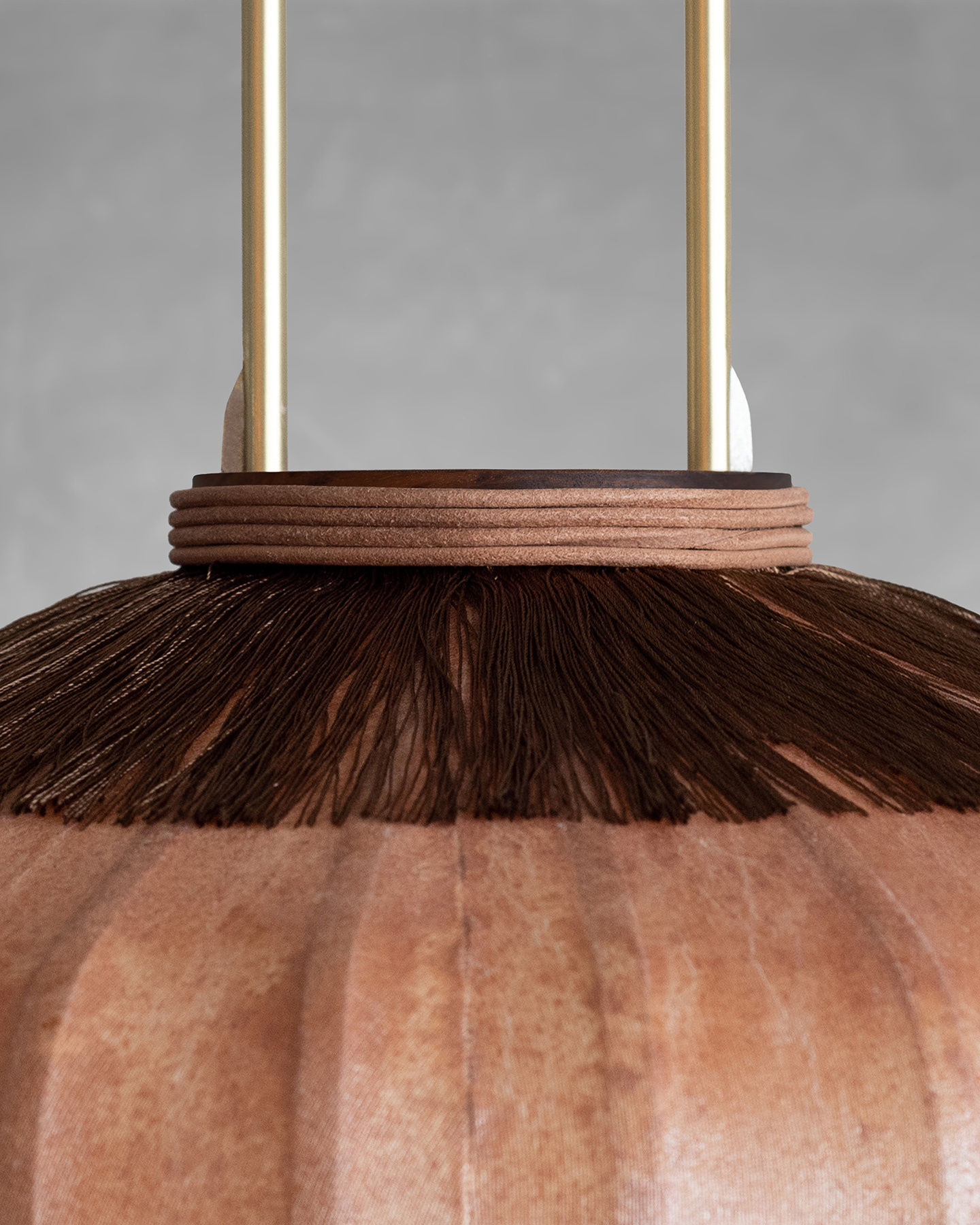 Material Walnut & bamboo frame, Hand-colored TC fabric, Metal pipes & ring