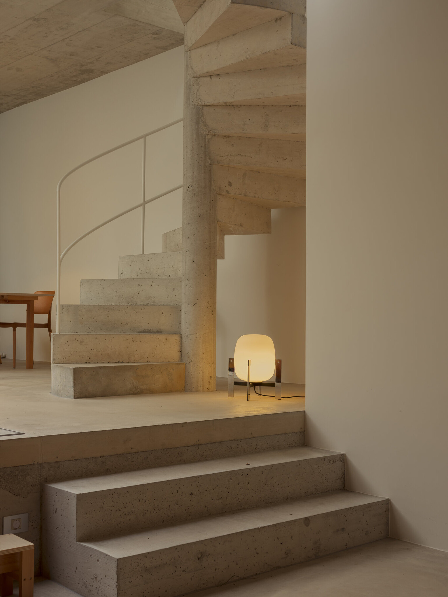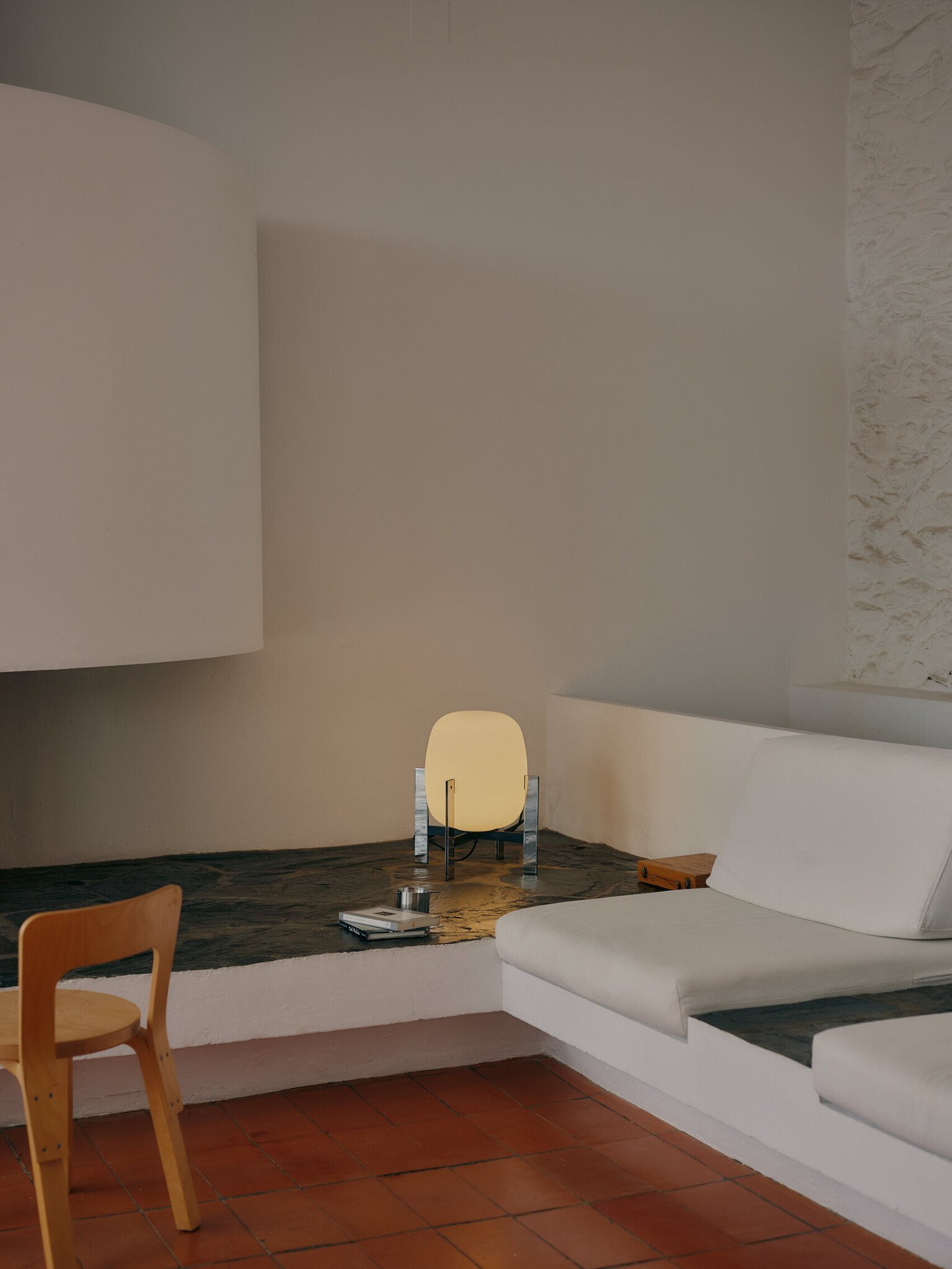Miguel Milá learned to master the expressiveness of steel by giving it a fragile heart. Strength and emotion, angle and curve. In a duel between strength and fragility, Cesta Metálica comes with or without a soft leather handle, contrasting with the well-aimed severity of the brackets that gently hold the delicate opal globe.
