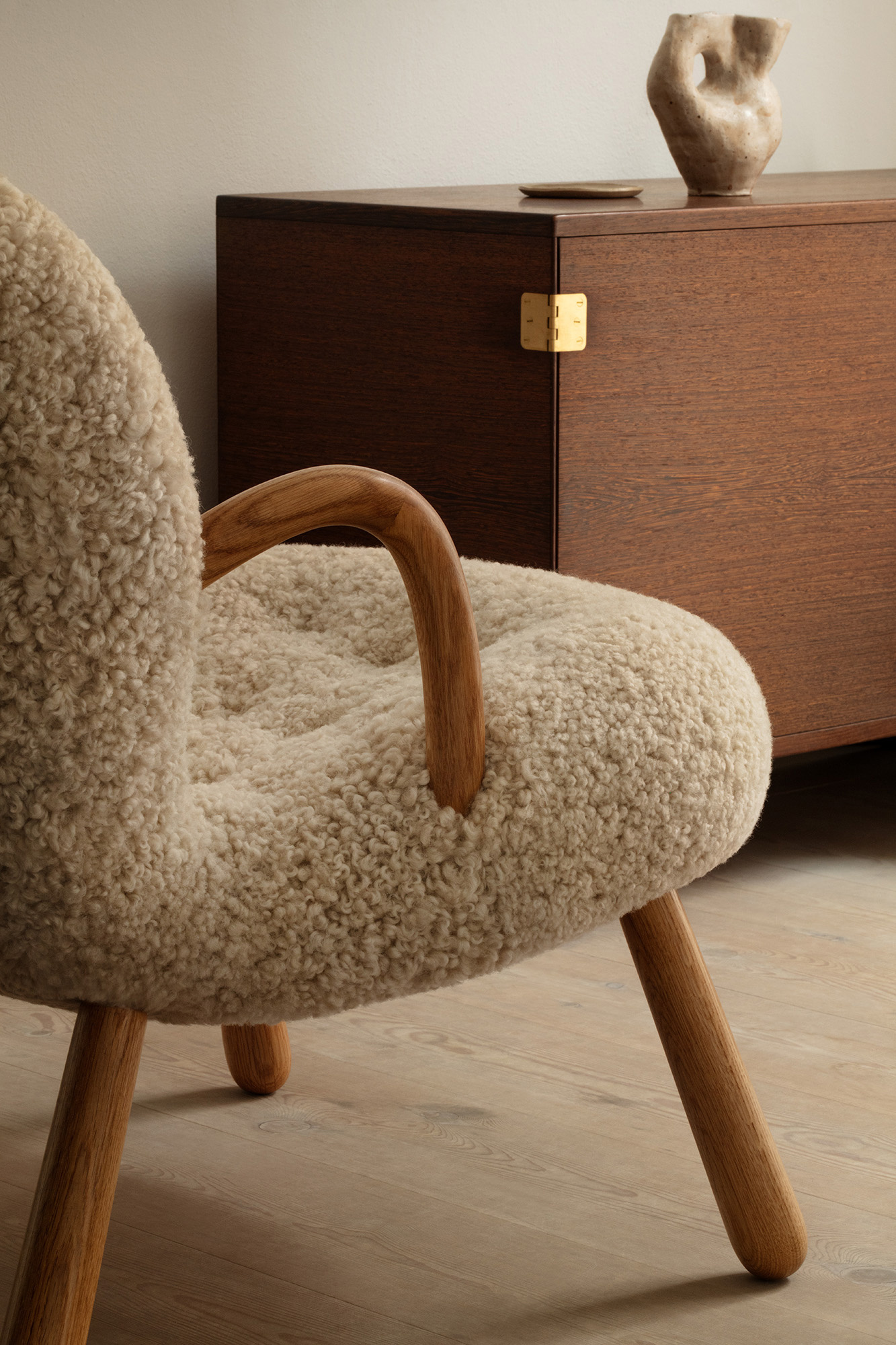 Create an accountThe Clam Chair was designed in 1944 in Copenhagen by Danish upholsterer Arnold Madsen. In 1945 Arnold founded the furniture company Madsen & Schubell together with cabinetmaker Henry Schubell in order to produce this unique chair that became known in Danish as the: 'Muslingstol' (Clam Chair), due to its unique shape.