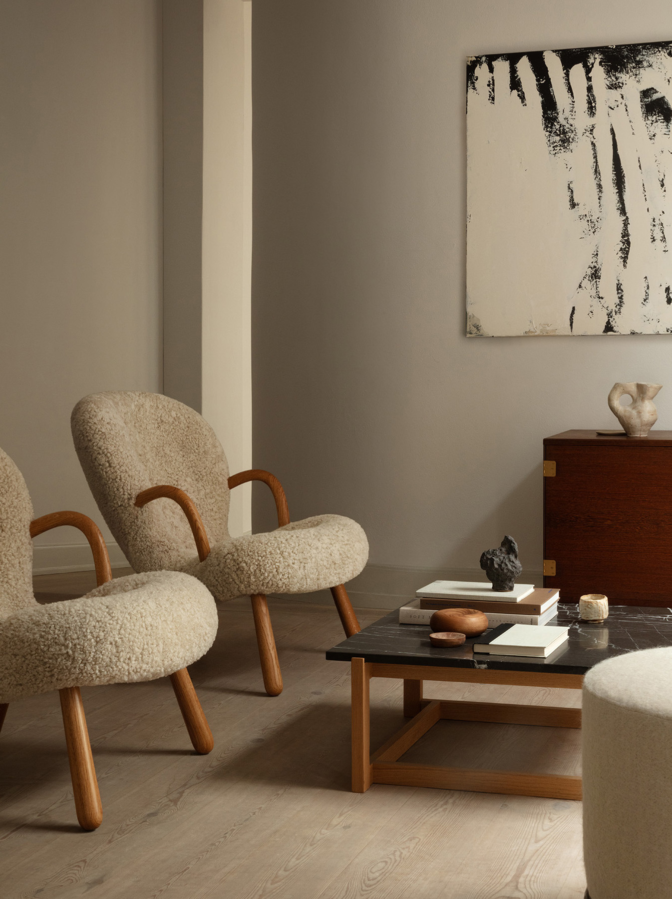 The design remained in production until the 1960s before lying dormant for decades. In 2012, original Clam Chairs reupholstered in sheepskin started to appear on the high-end auction market, leading to incorrect accreditation and a subsequent movement by researchers and enthusiasts to identify the original designer and honour his legacy.