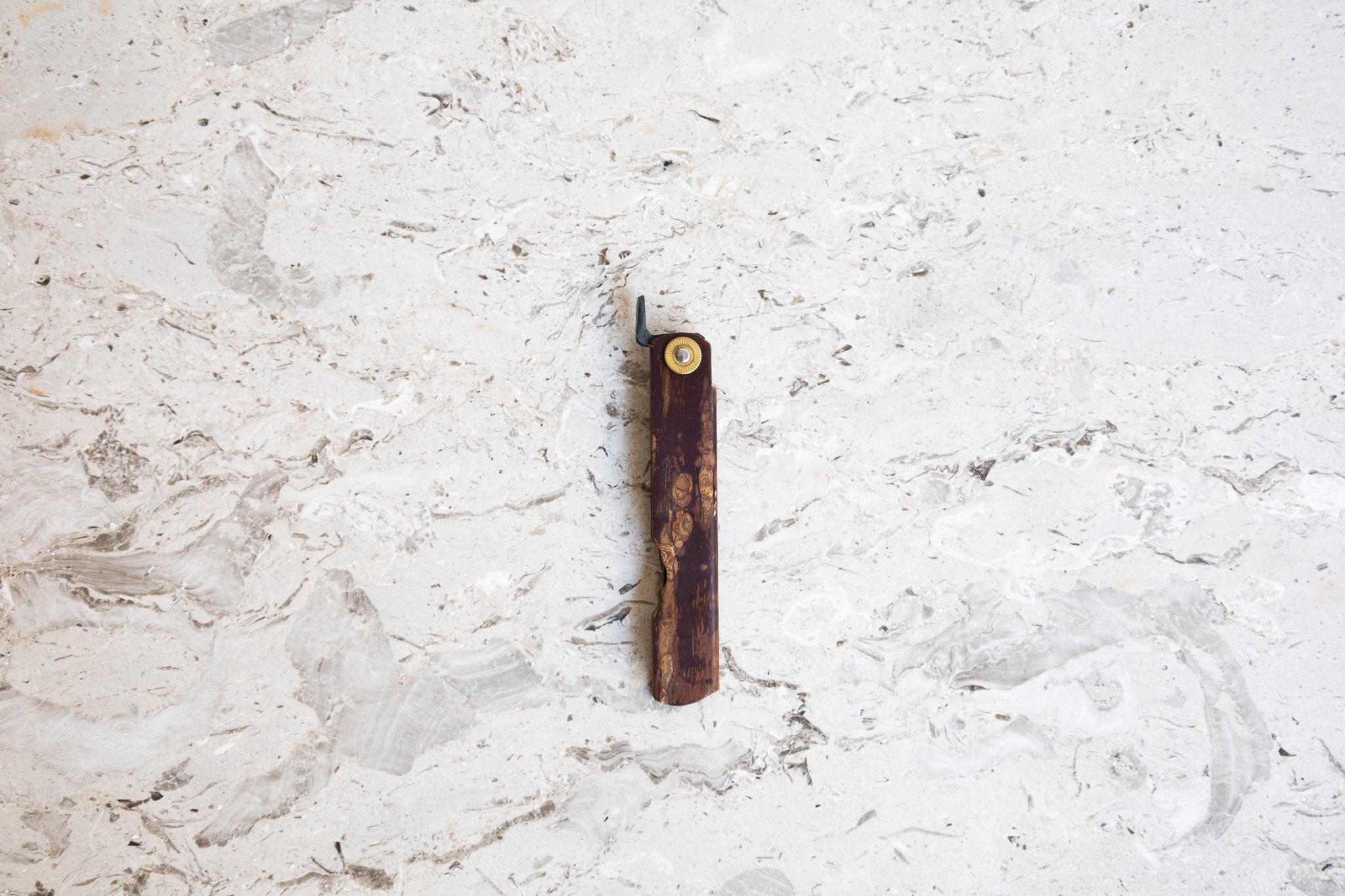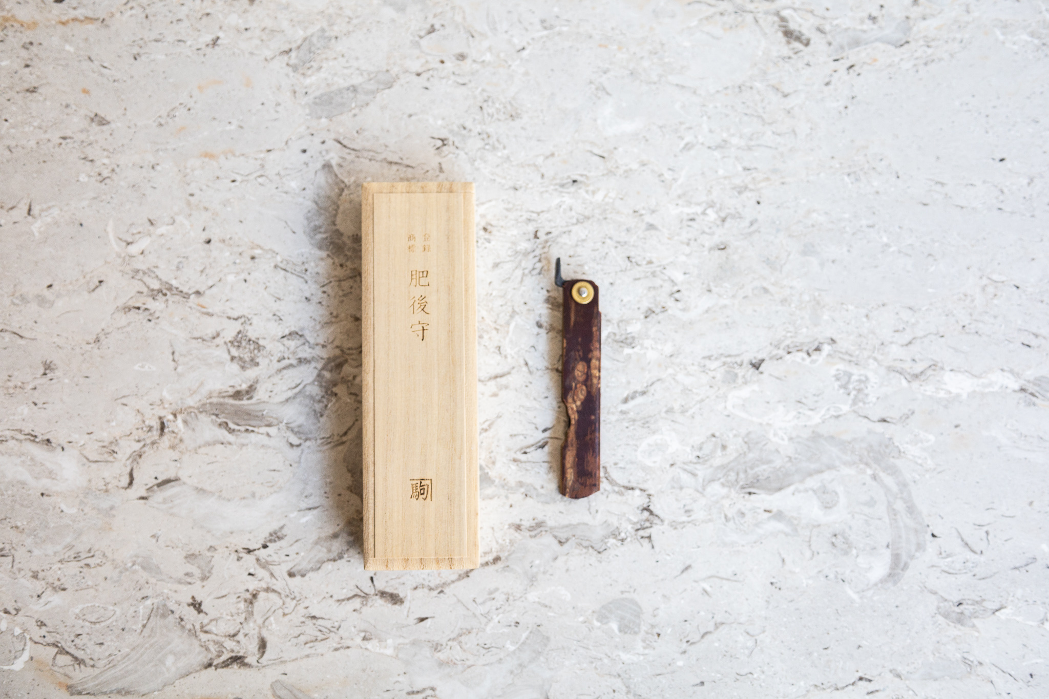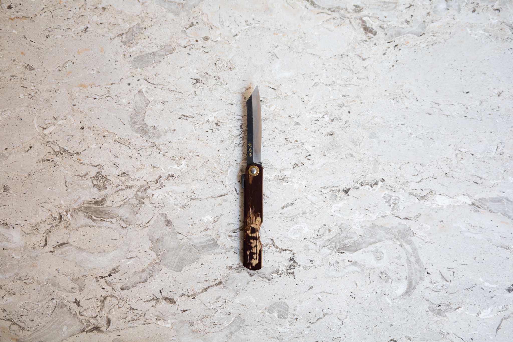 This traditional Japanese pocket knife has been produced since 1896. The perfect compact utility knife for the home or to take camping with. The double-bevel blade is hand-forged of Warikomi steel with a brass handle.