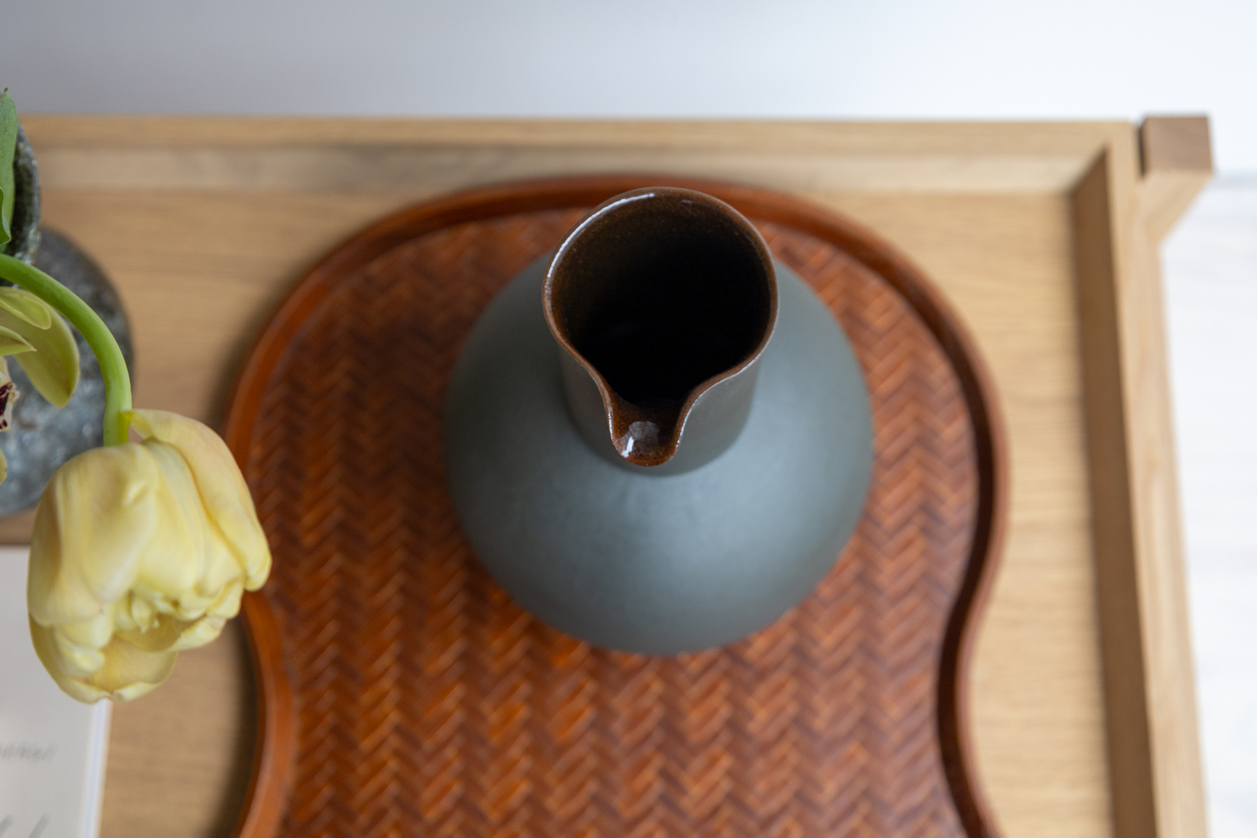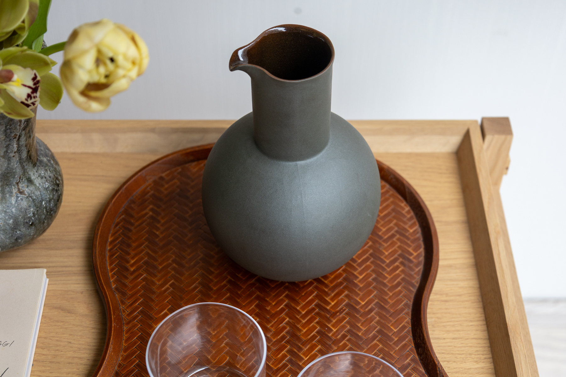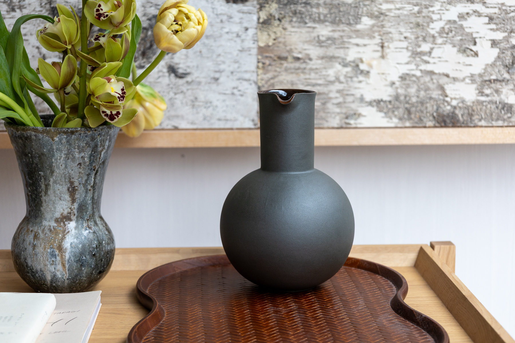 A pure form dark green carafe by Swedish ceramic artist Jonas Lindholm.