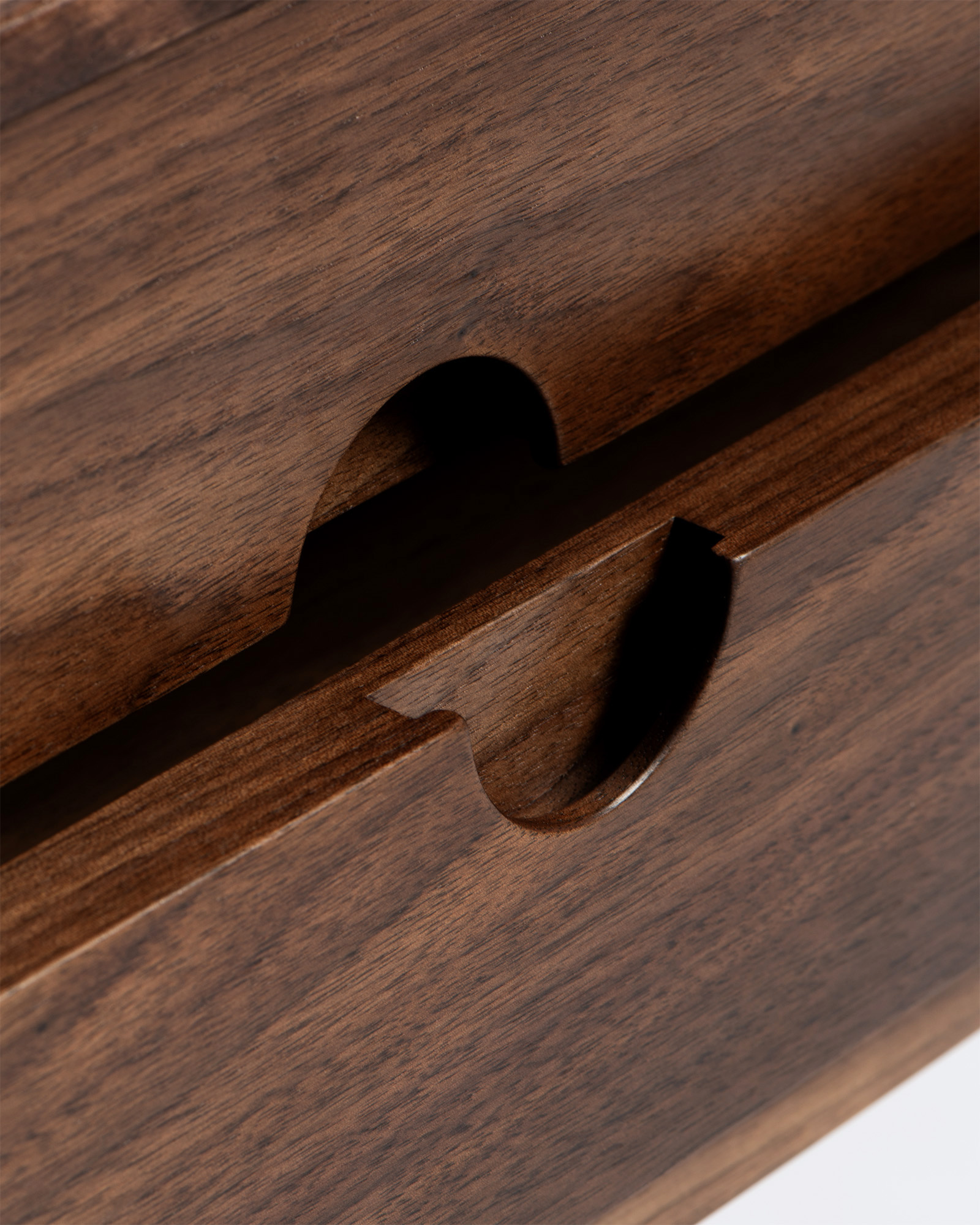 Solid oak or walnut wood frame with an oiled finish, constructed using traditional joinery methods.