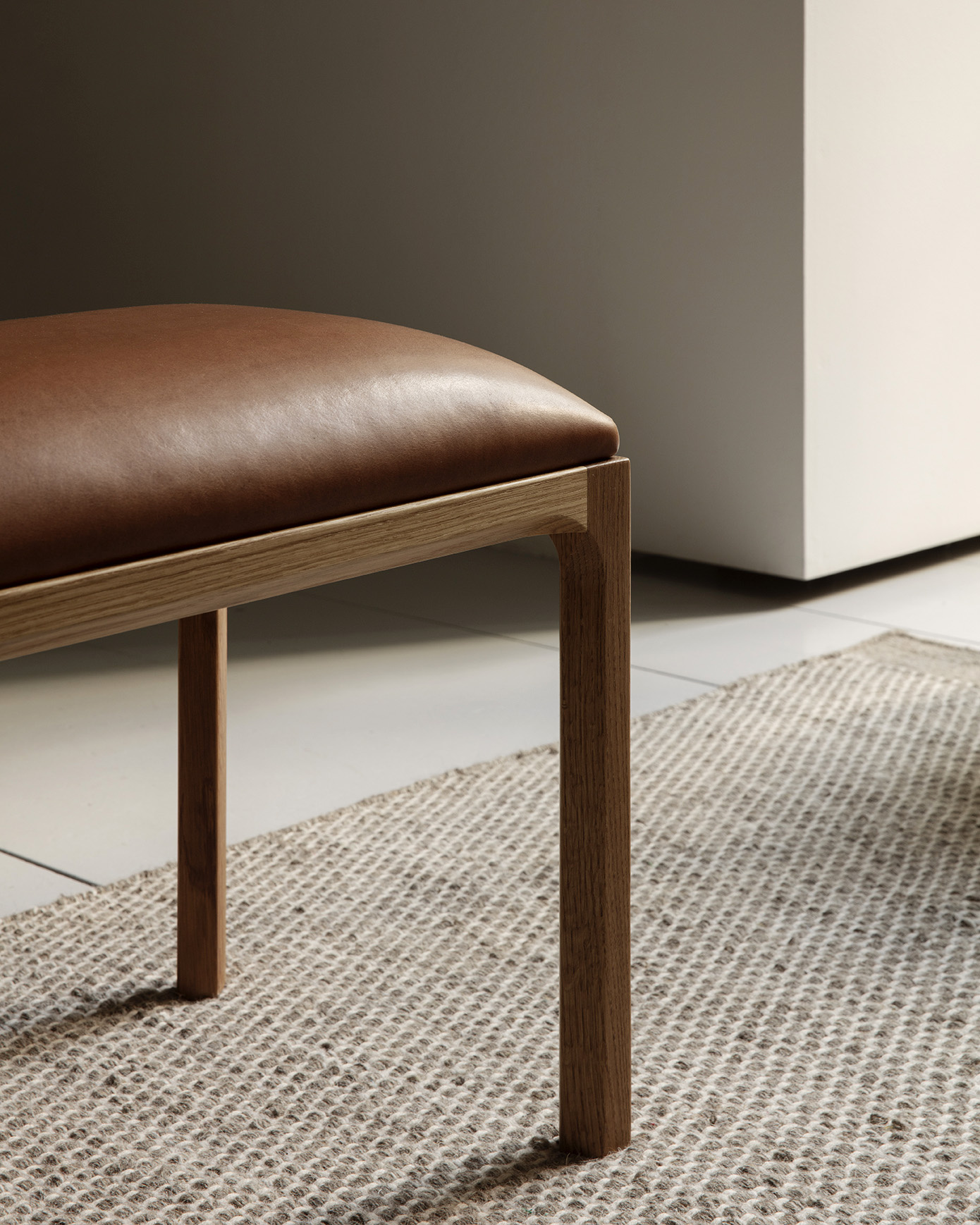 Solid oak or walnut wood frame with an oiled finish, constructed using traditional joinery methods.