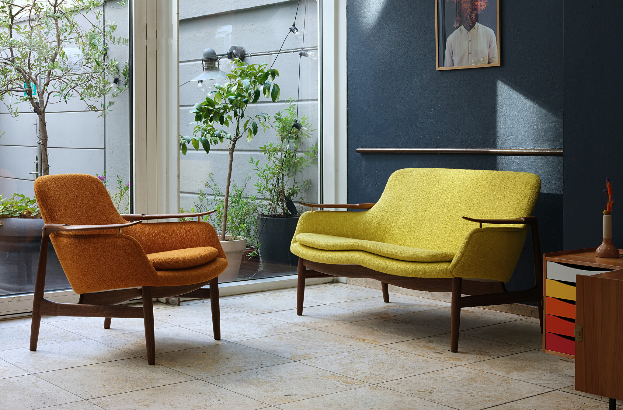 Finn Juhl originally designed the 53-series for master joiner Niels Vodder. It was introduced at the Copenhagen Cabinetmakers' Guild Exhibition later that year.