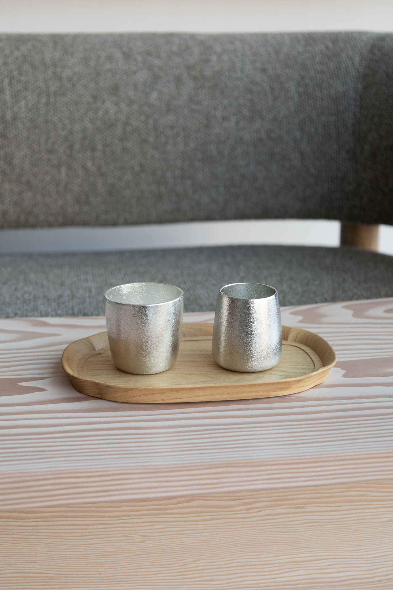 Nousaku's tin products are handmade using traditional casting techniques handed down for over 400 years in Takaoka city, Toyama prefecture, Japan. Tin is known for having good omens as it does not break, rust or tarnish easily. Tin has a high thermal conductivity and the cup itself becomes cold quickly. It is equally good for warmed sake.
