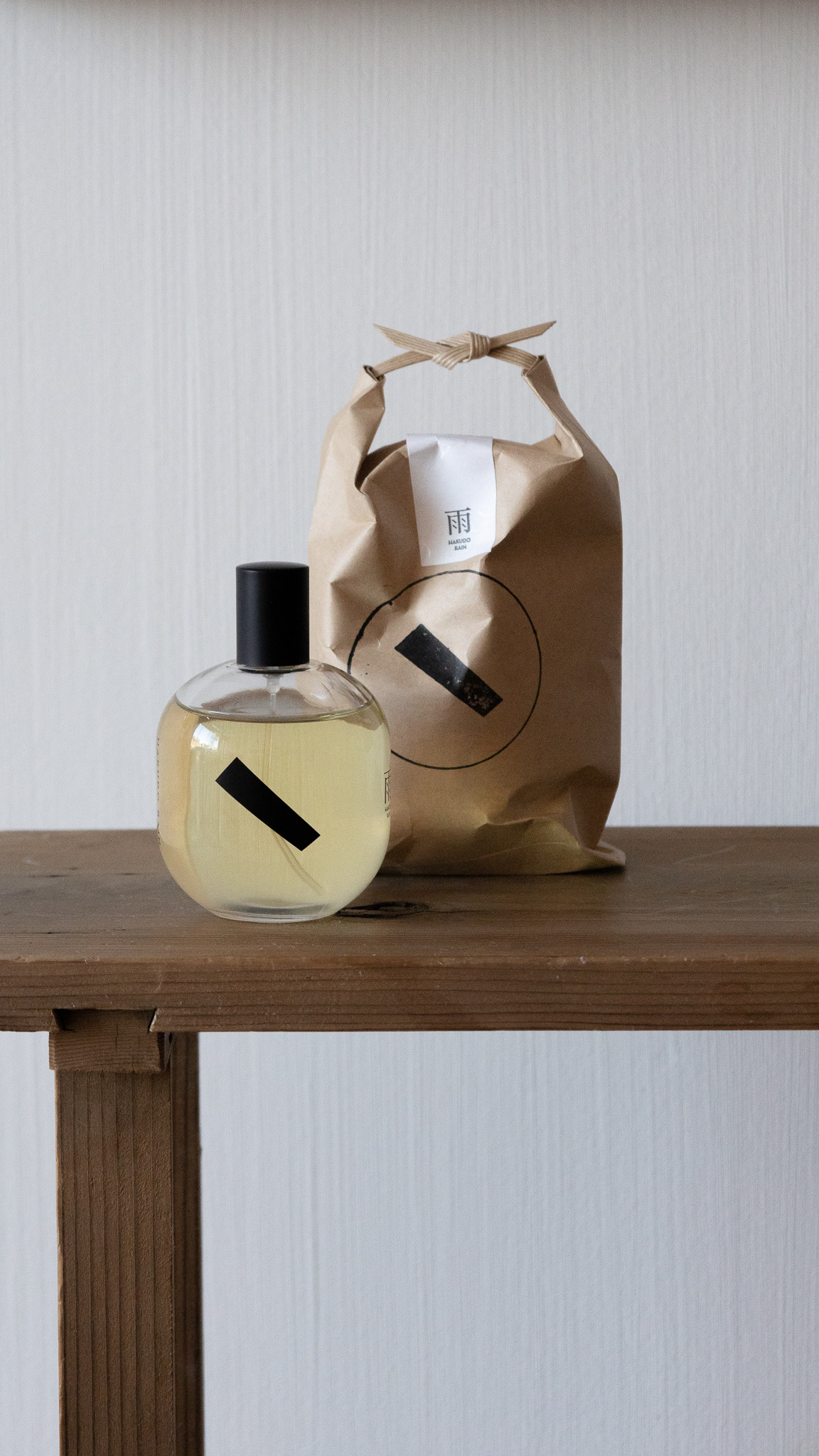 Based on the scent of Hakudo that offers a contemporary purifying ritual through a quiet moment to unwind in everyday life, Hakudo rain extends the concept of "listening" to scent with an atmosphere of a spirited Japanese Island after the rainfall.