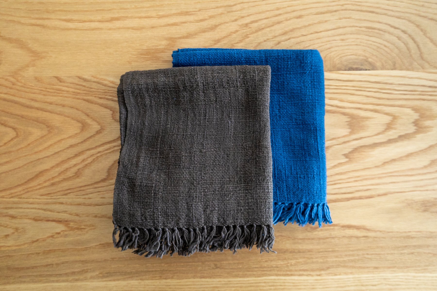 Handspun and hand-woven face towels made of cotton produced in Bihar state in North Western India near the Nepali border. Made for Japanese clothing company Jurgen Lehl, which is prized for sourcing some of the most beautiful materials in the world.