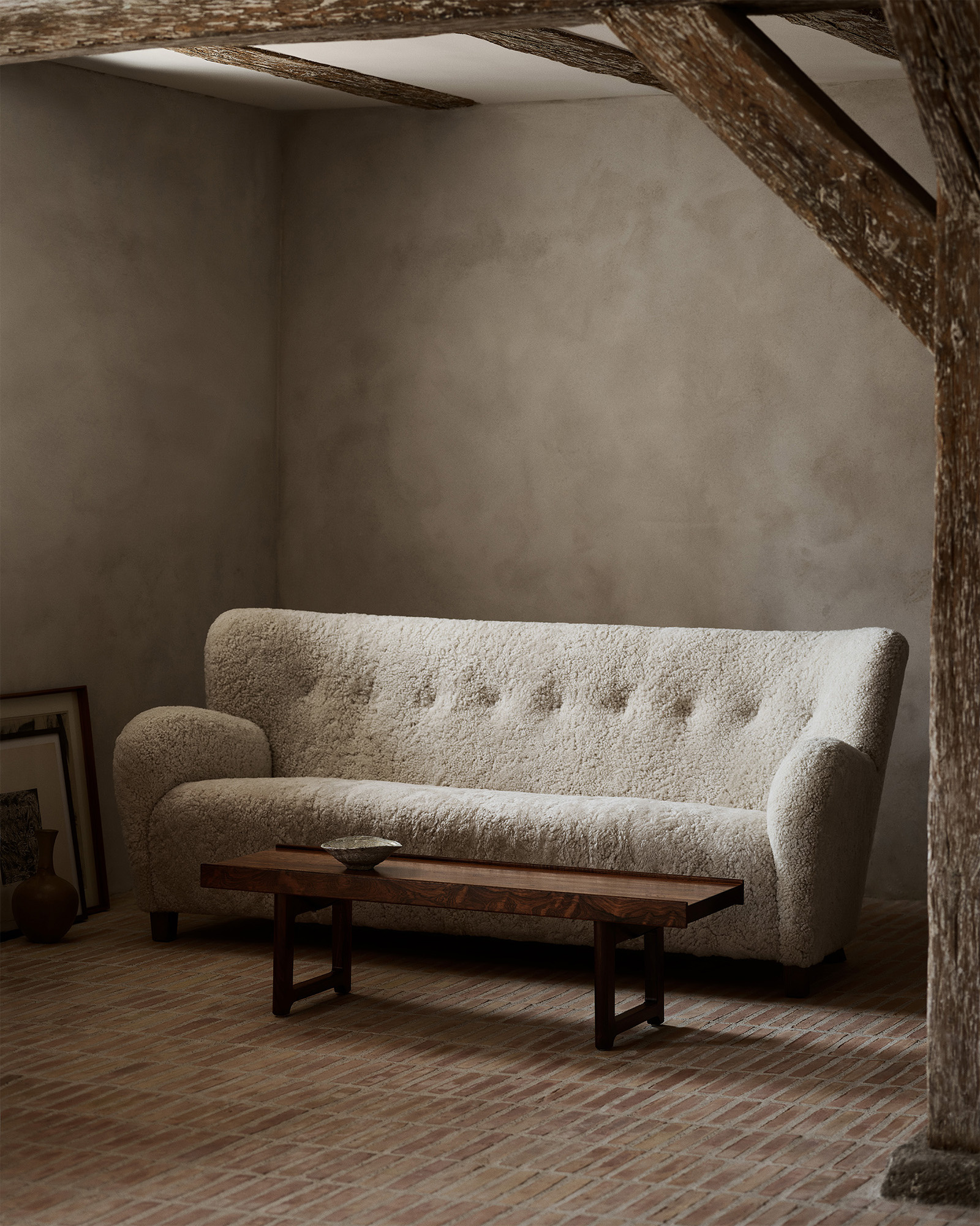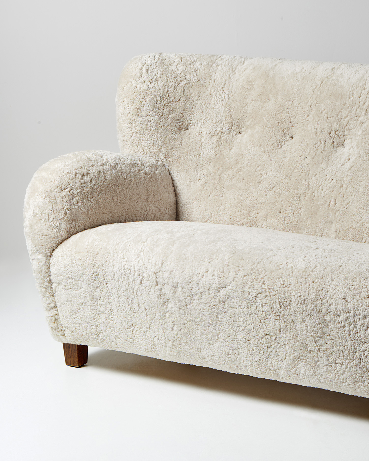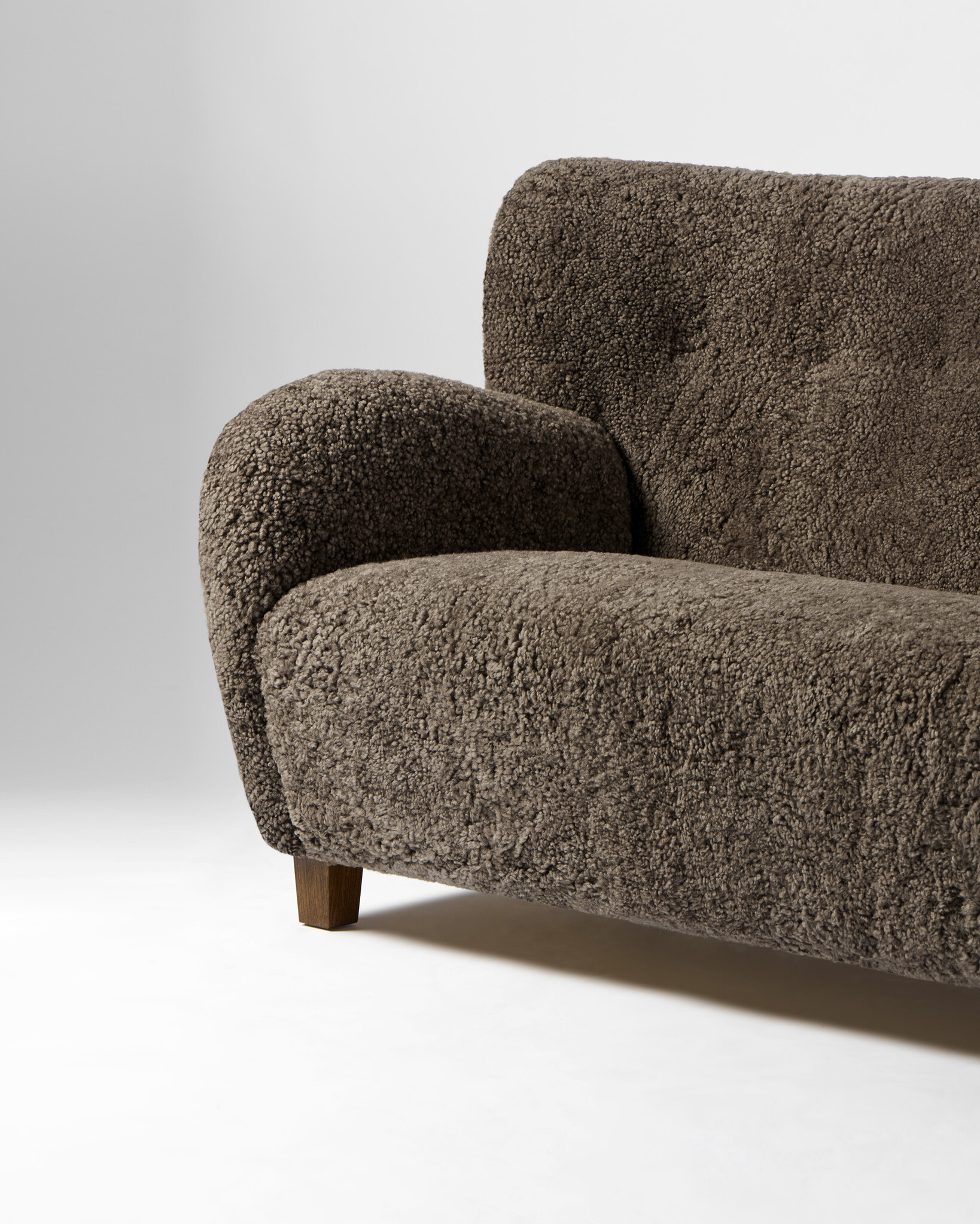 Colour & Materiality Sheepskin upholstery, oak or walnut legs.