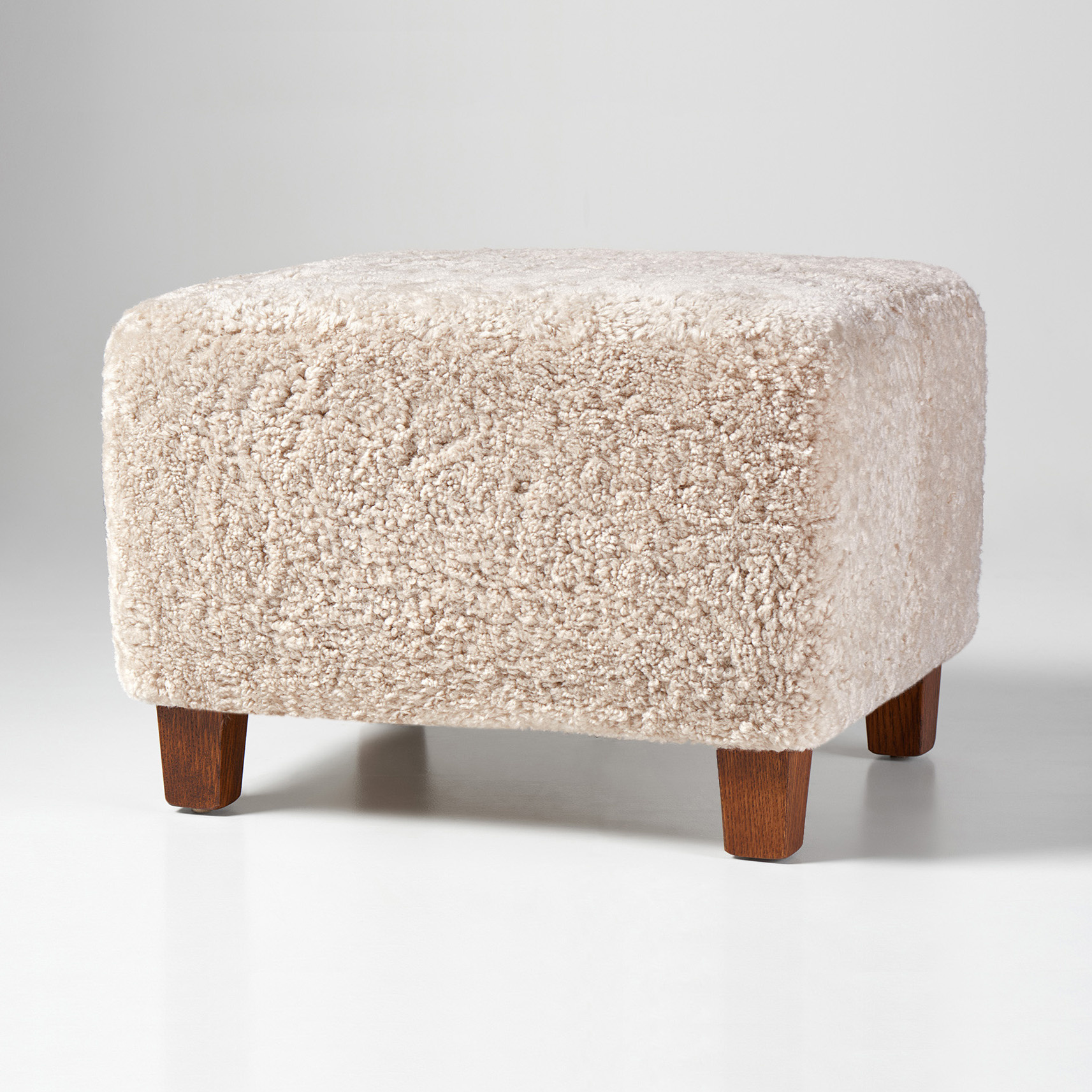Colour & Materiality Sheepskin upholstery, oak or walnut legs.