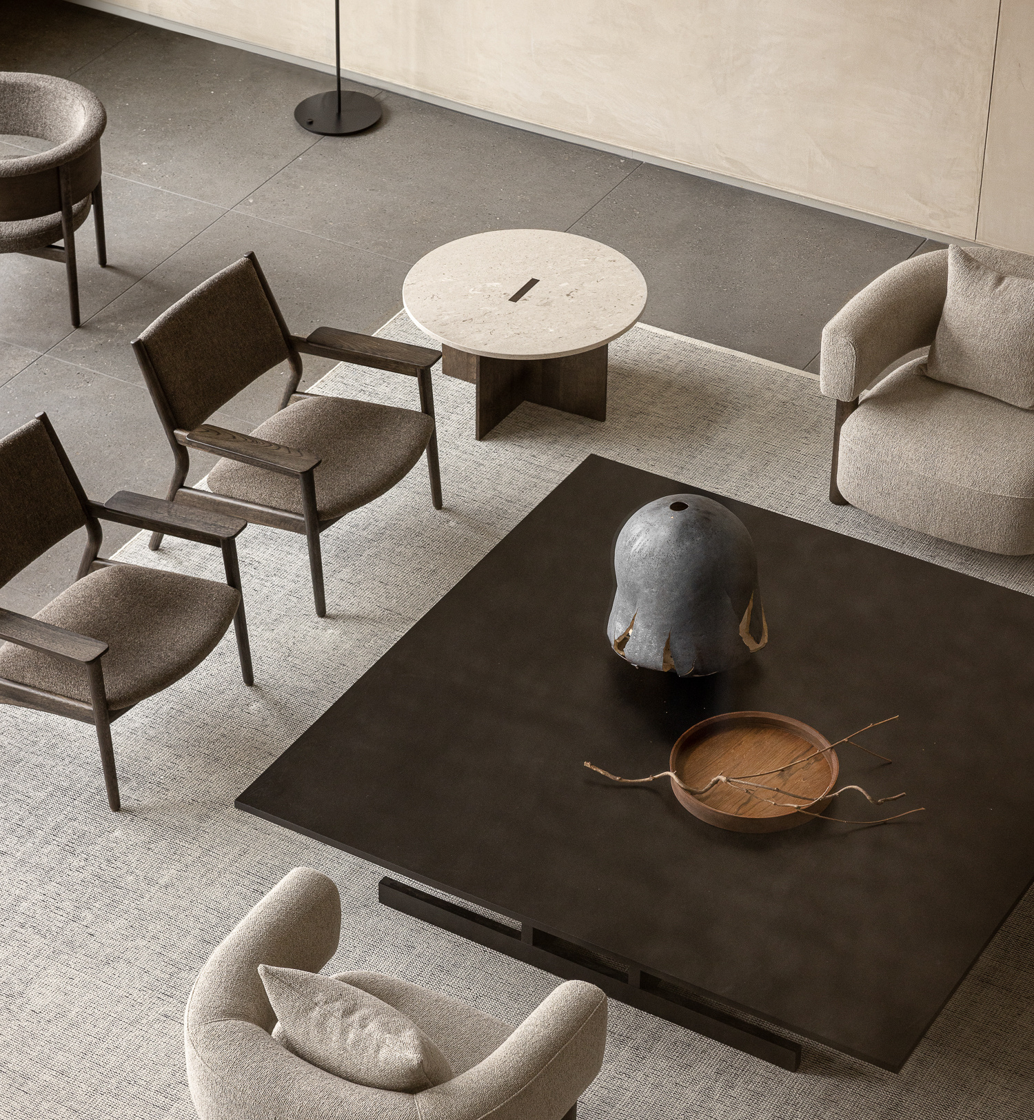 The Kinuta Collection has its native setting in two of the 36 Kinuta Terrace apartments located in the Kinuta ward of the Setagaya district in Tokyo. Kinuta Terrace was originally built in the 1980s with an integrated courtyard, giving residents the advantages of a single-family home. The Keiji Ashizawa Design team has renovated the interiors in collaboration with Norm Architects, creating, amongst a series of interior elements, 12 tailormade furniture pieces that make up the first collection of Karimoku Case Study, all drawing on the natural references of the connected courtyard in an attempt to invite in nature as much as possible — in their design language as well as through their material compositions.