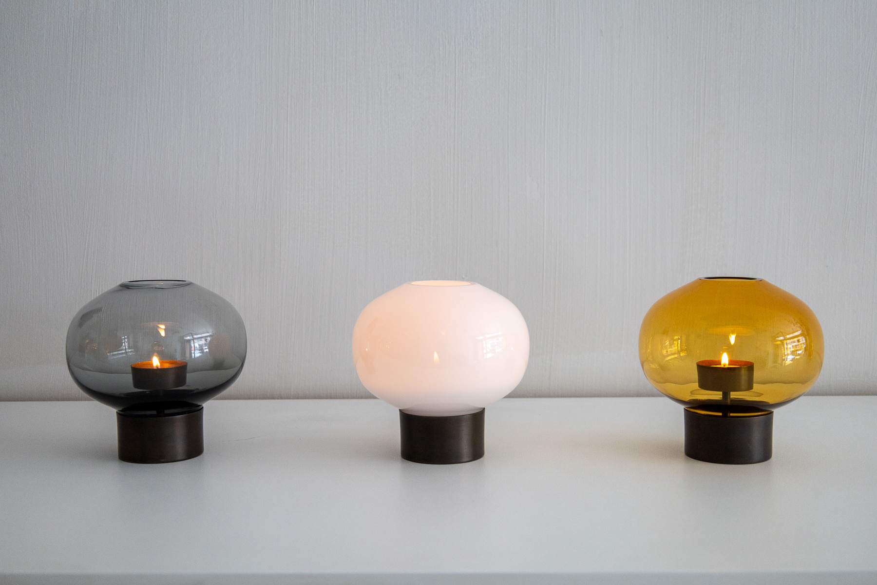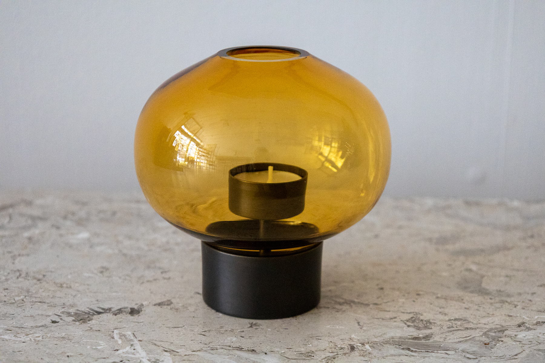 The shade is made of mouth-blown glass from Murano, Italy, and Uki’s base is produced out of spun copper made in Toronto. Tealight not included.