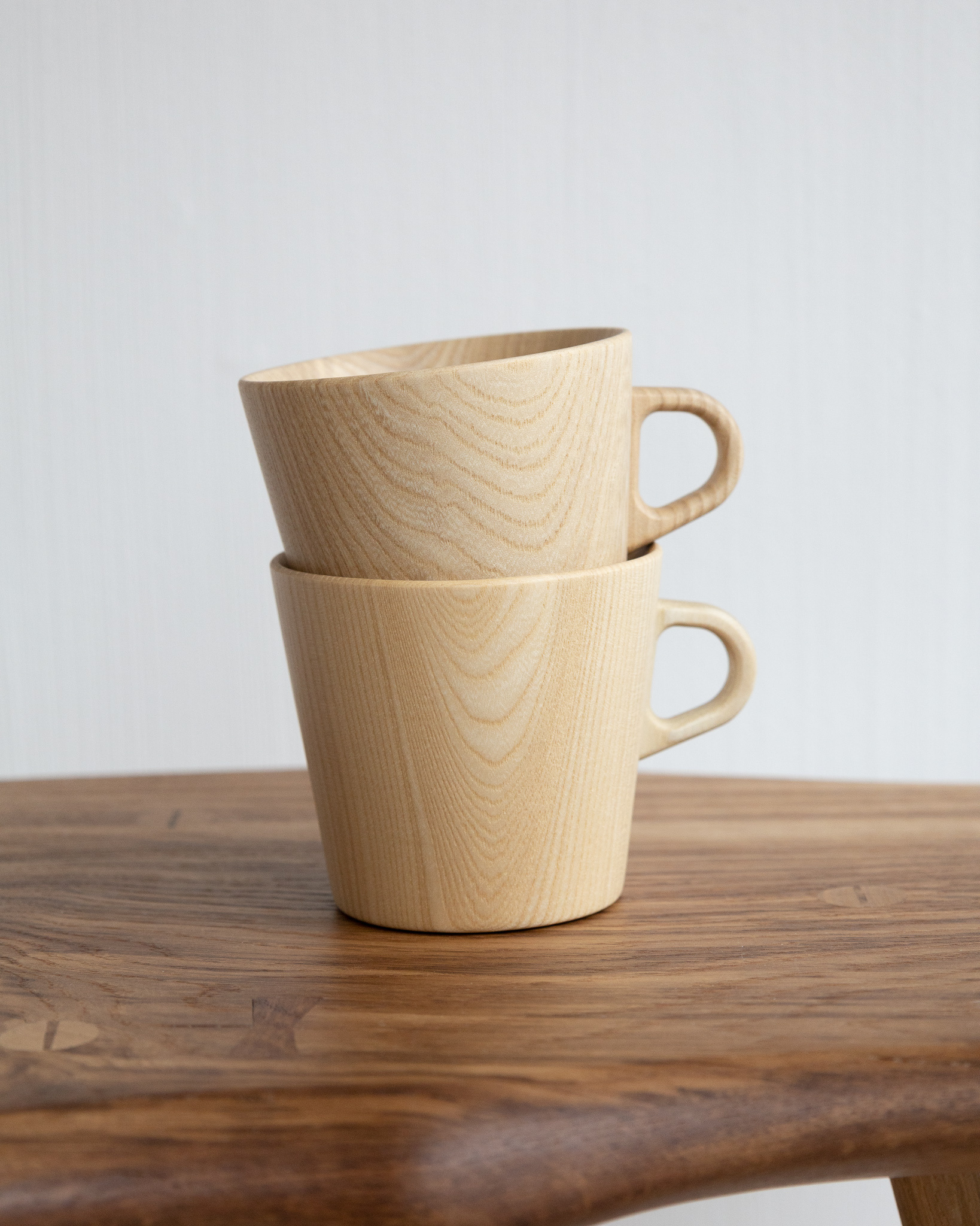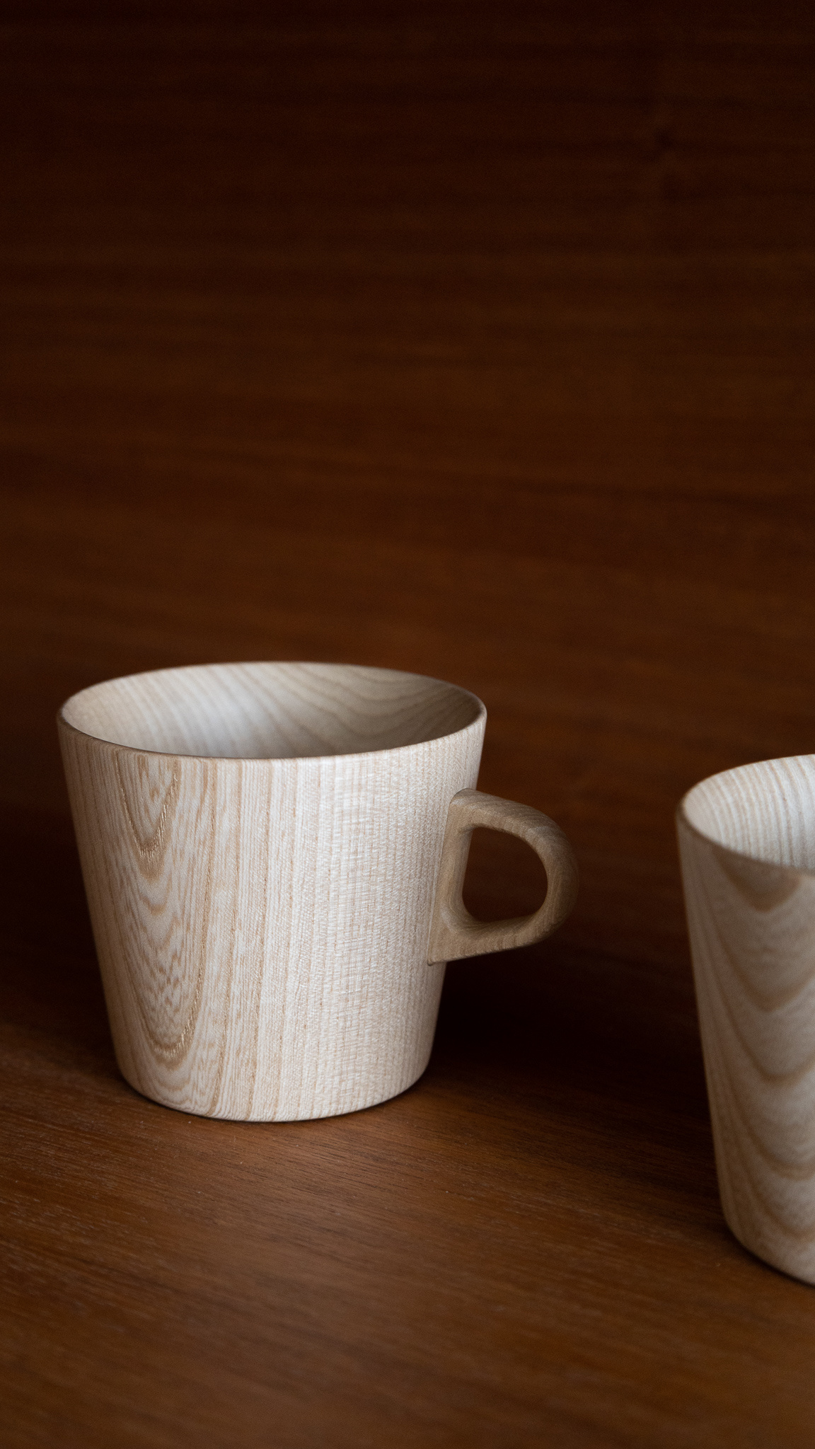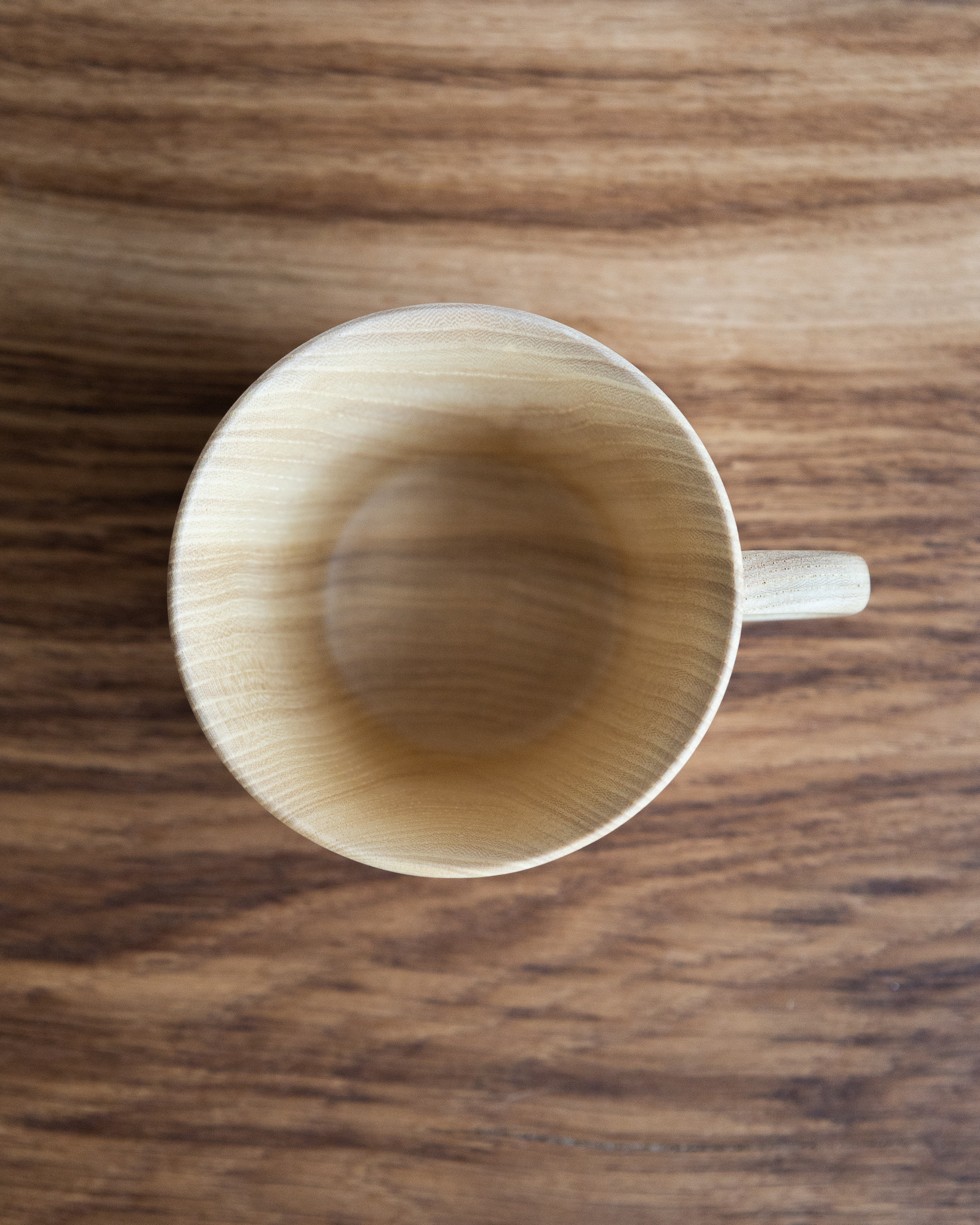 Kami means paper, and the Kami mug is hand-crafted in a workshop in Hokkaido, Japan by a single artisan, Hidetoshi Takahashi. The cup is made from Castor Aralia wood, shaped using a lathe and coated with a food safe resin.