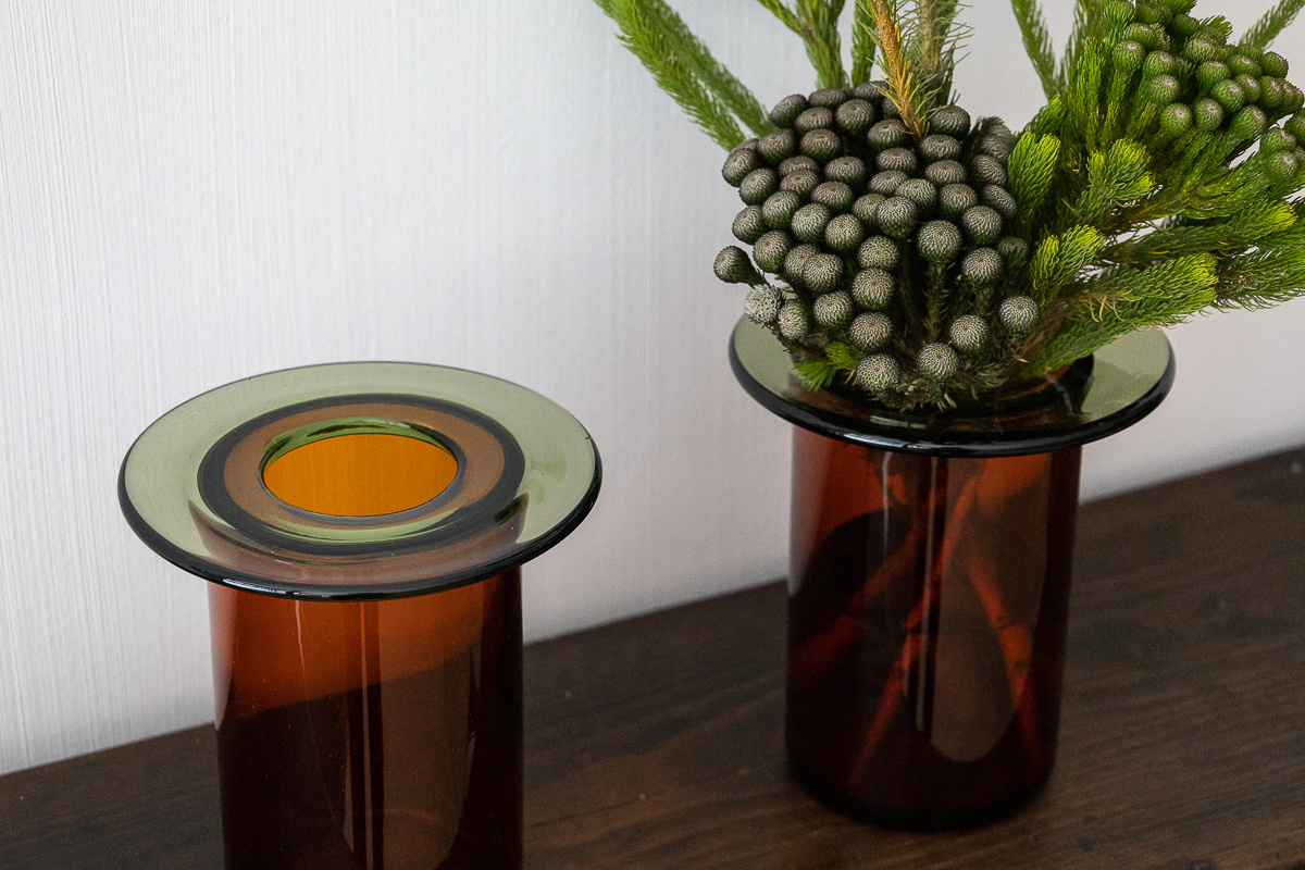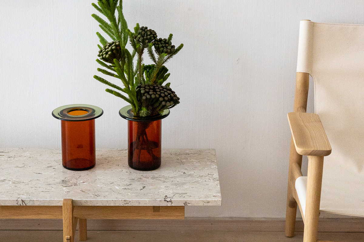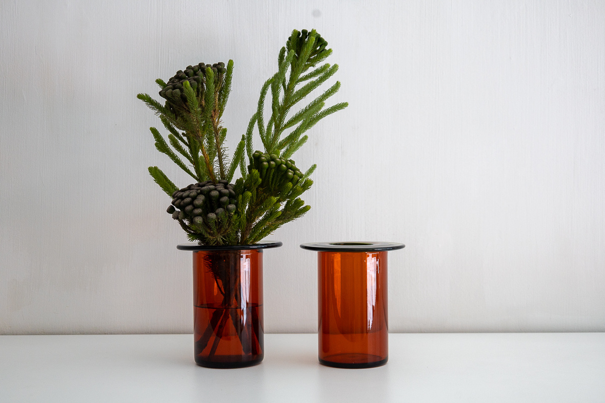 Like petals on a stem, the vase has a lot of different connotations. We appreciate how the strict and defined architectural grammar of the object resonates well with the more expressive and animated objects of our collection. But ‘Rabarbra’ also reminds us of something vegetal – a stylized flower with the top disc resting on the lower body like petals on a stem.