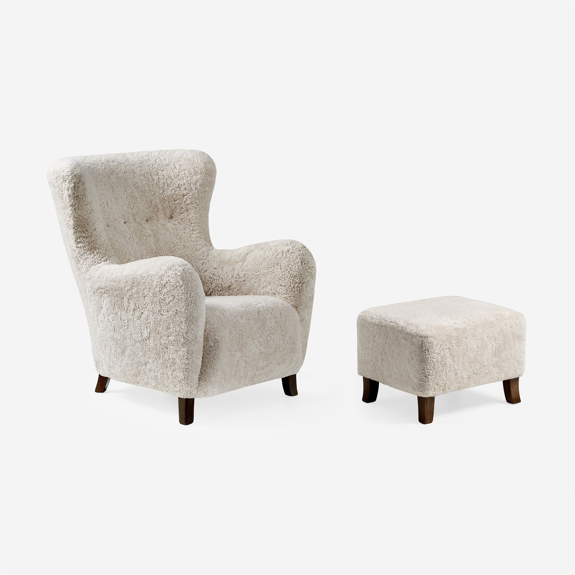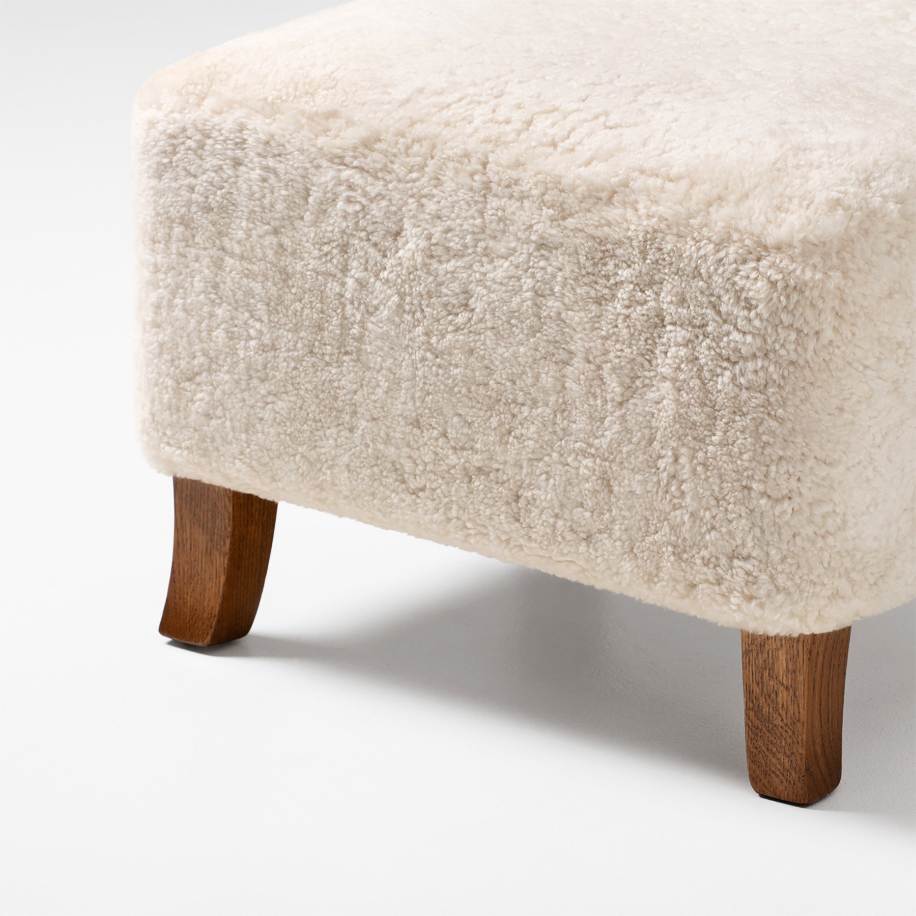 Colour & Materiality Sheepskin upholstery, oak or walnut legs.