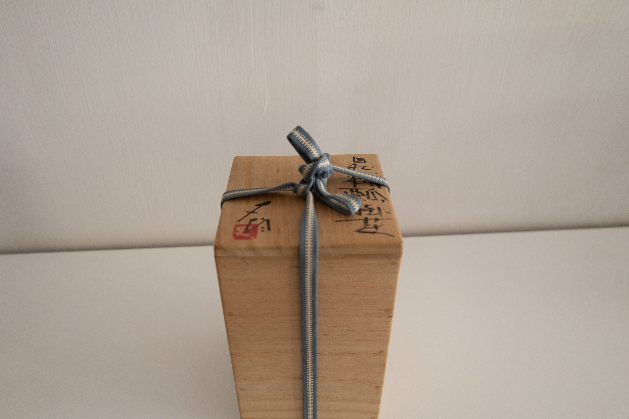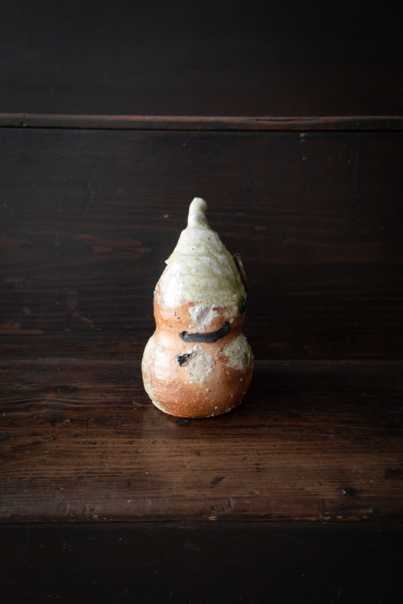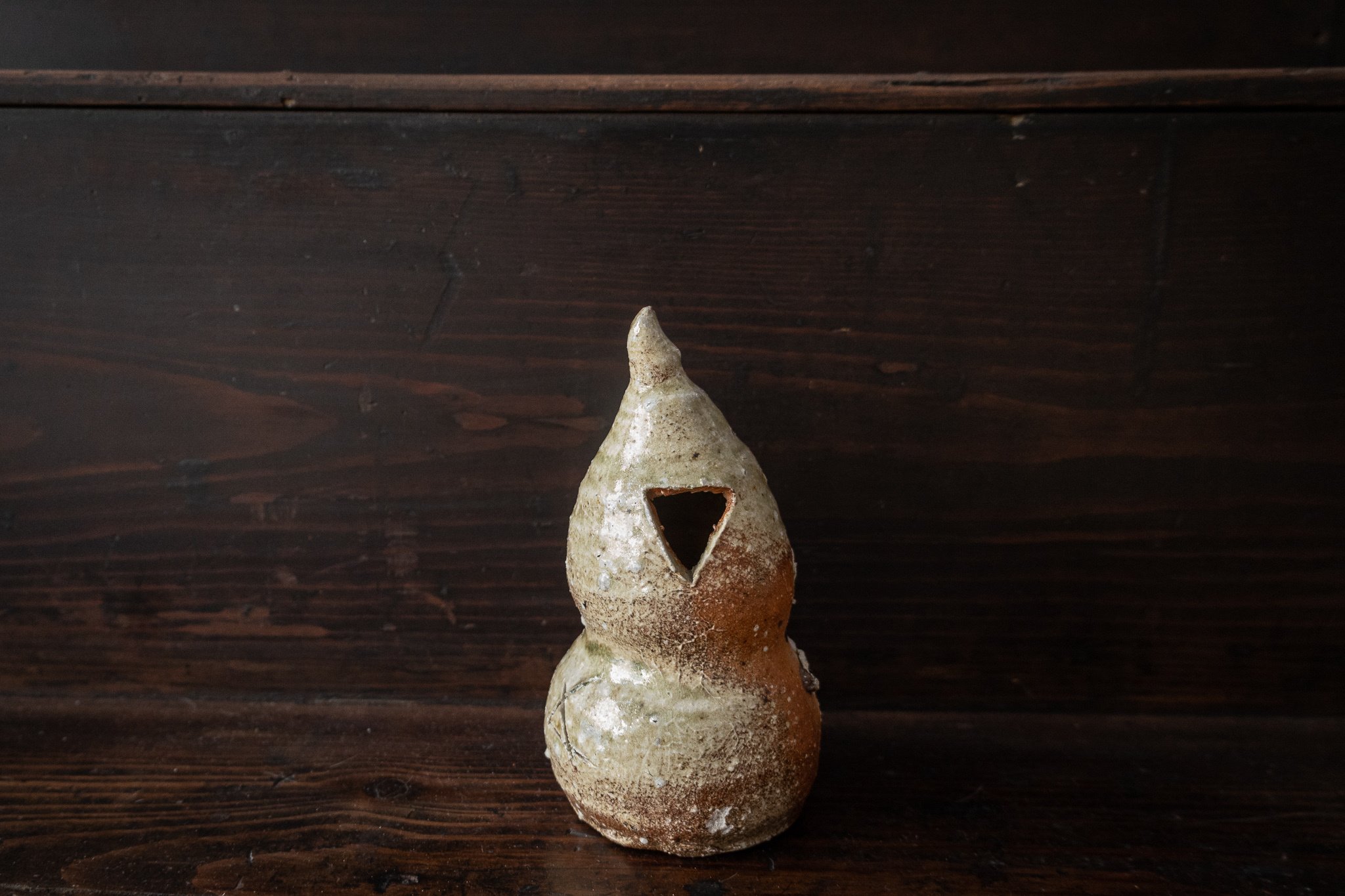 An Iga ware style vase by Japanese potter Shiro Tsujimura. This vessel showcases the masterful use of ash glaze over stoneware resulting in a complex layers of green and celadon over earthy red clay.