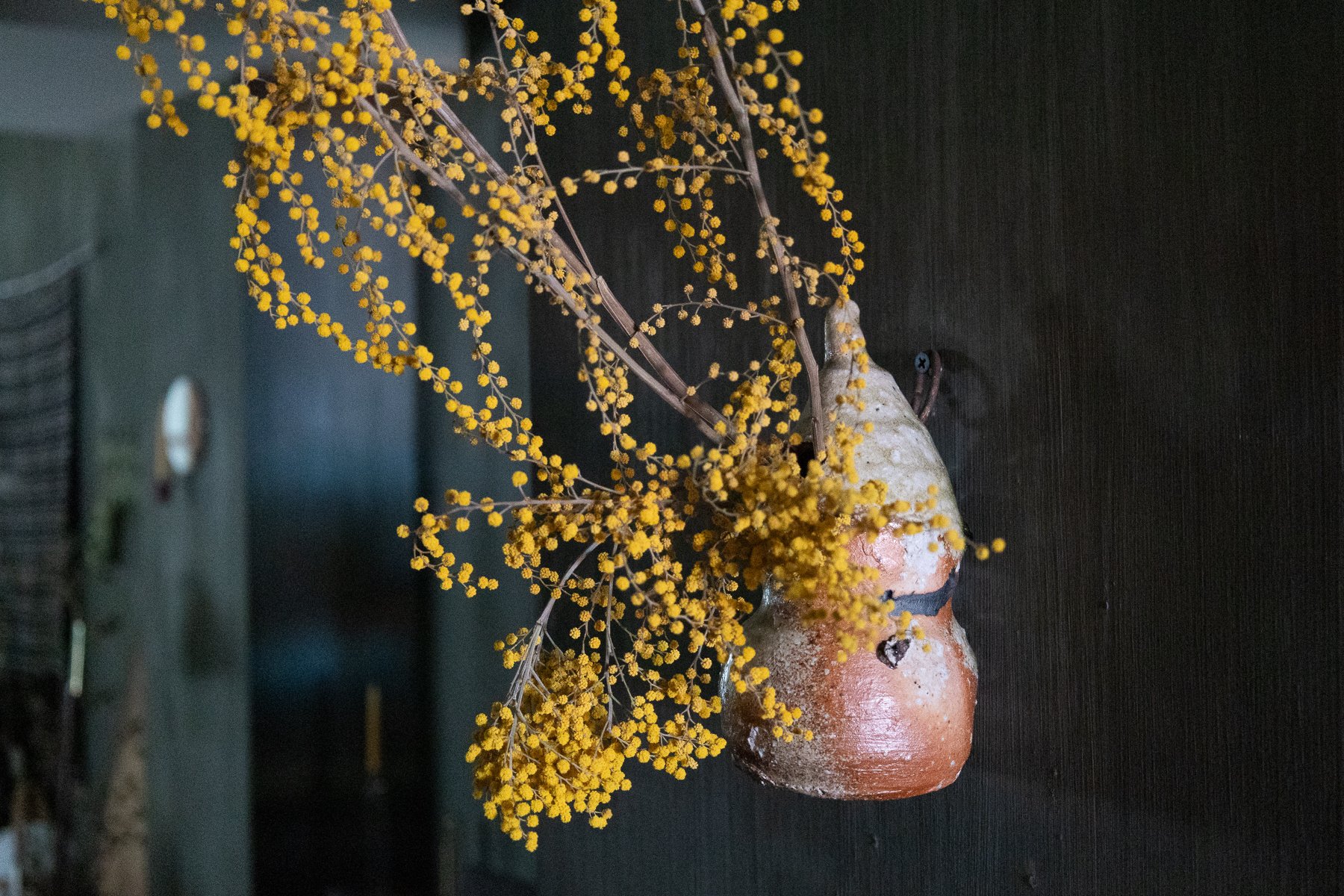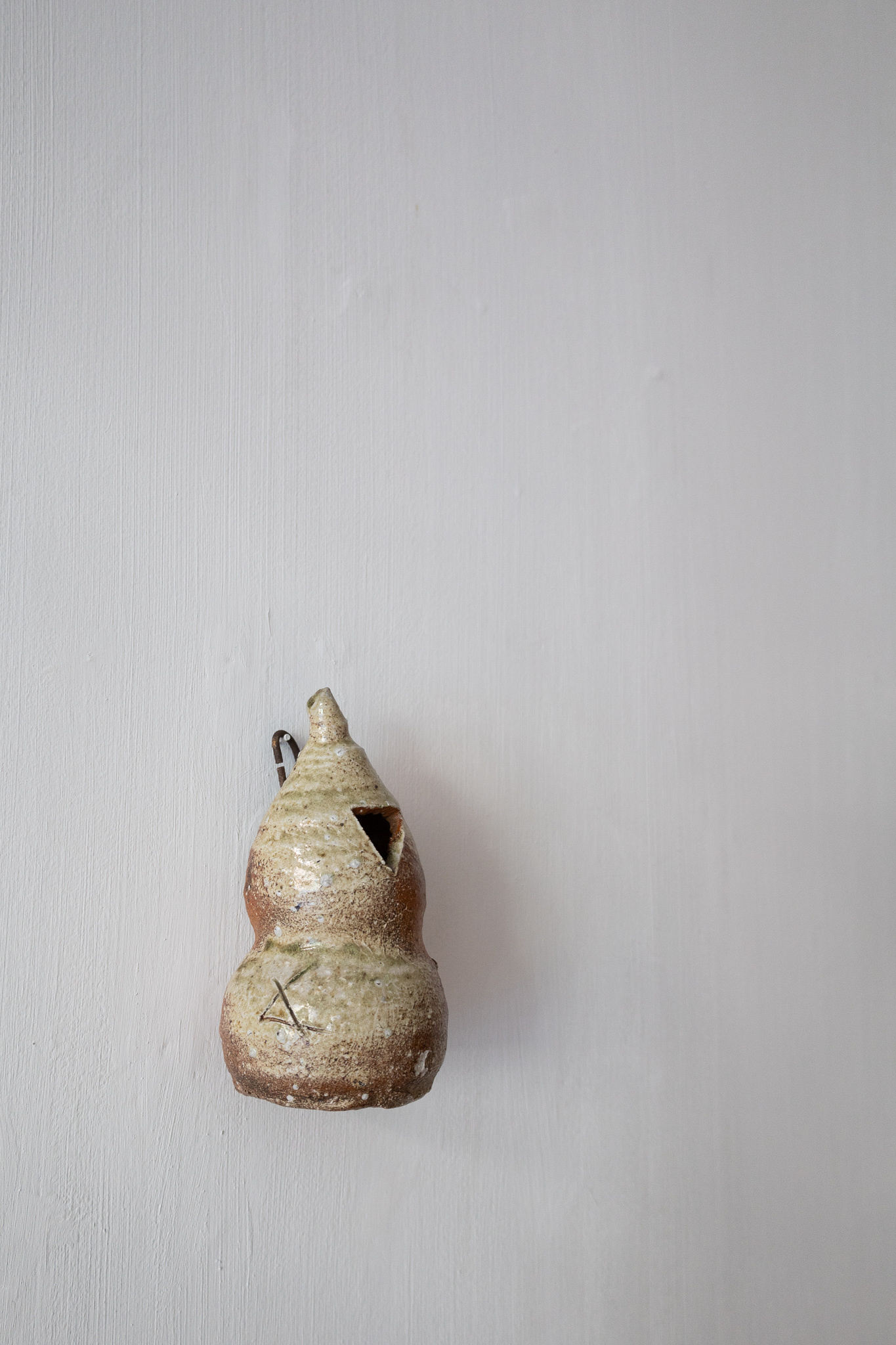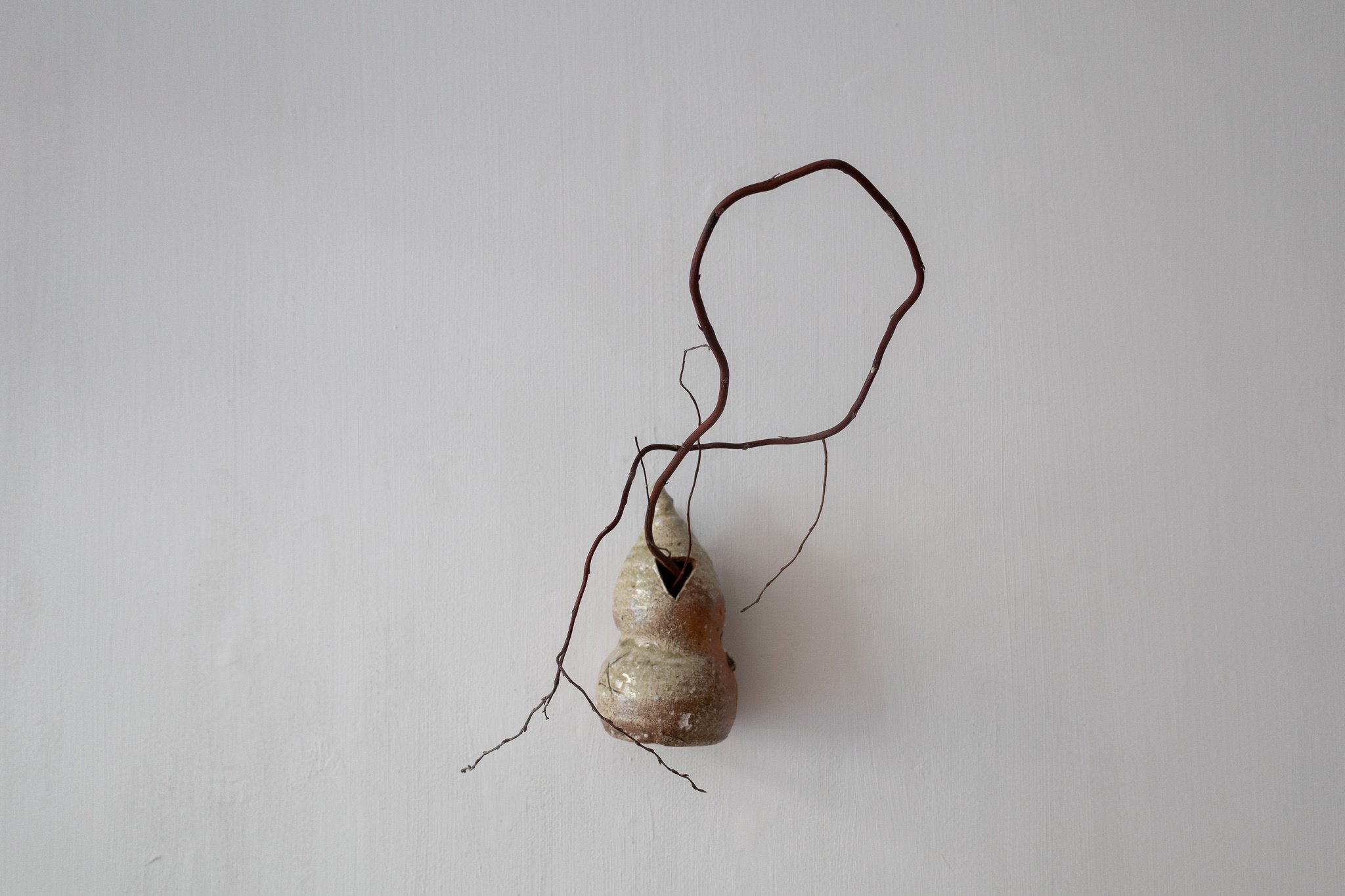 An Iga ware style vase by Japanese potter Shiro Tsujimura. This vessel showcases the masterful use of ash glaze over stoneware resulting in a complex layers of green and celadon over earthy red clay.