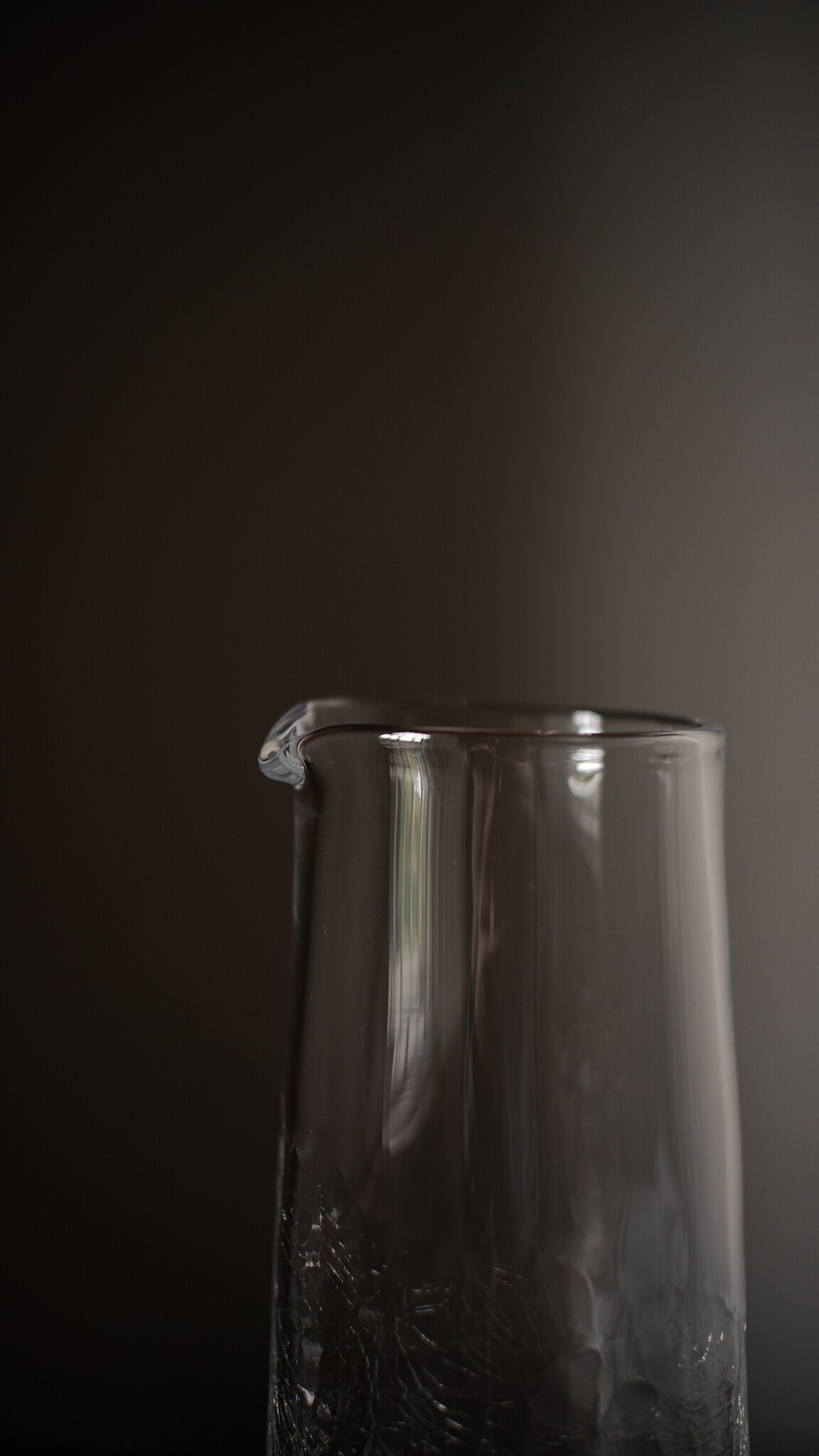 Each piece is hand-blown, then while still hot, the form is baptised in cold water, shocking the mineral with a crackled texture. Asymmetry, light-play and textural depth define the vessels’ character, while subtly tapered shapes ensure functionality and stability.