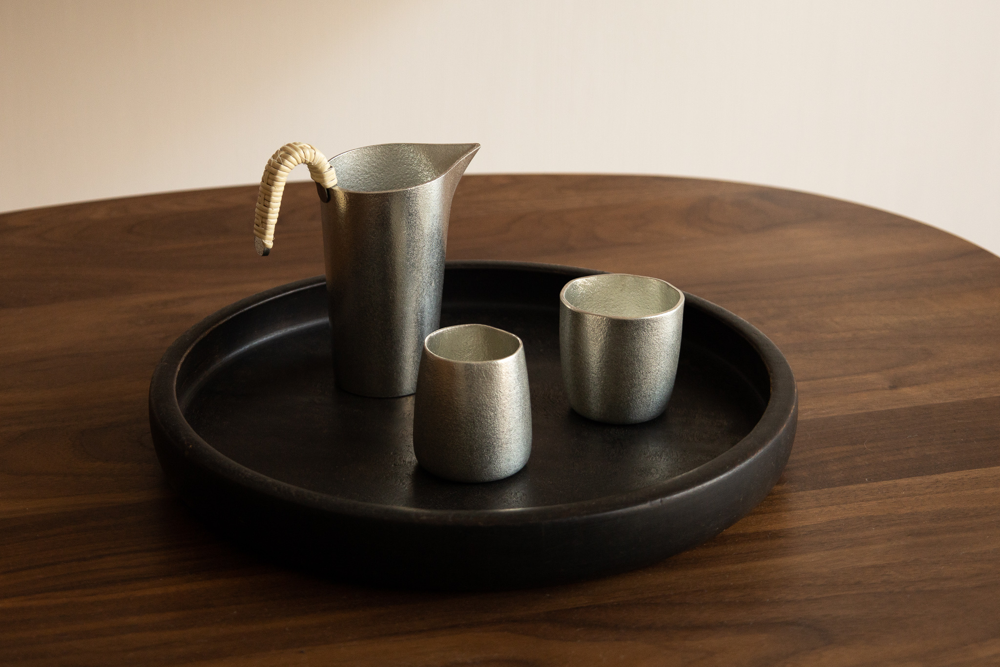 Nousaku's tin products are handmade using traditional casting techniques handed down for over 400 years in Takaoka city, Toyama prefecture, Japan. Tin is known for having good omens as it does not break, rust or tarnish easily. Tin has a high thermal conductivity and the cup itself becomes cold quickly. It is equally good for warmed sake.