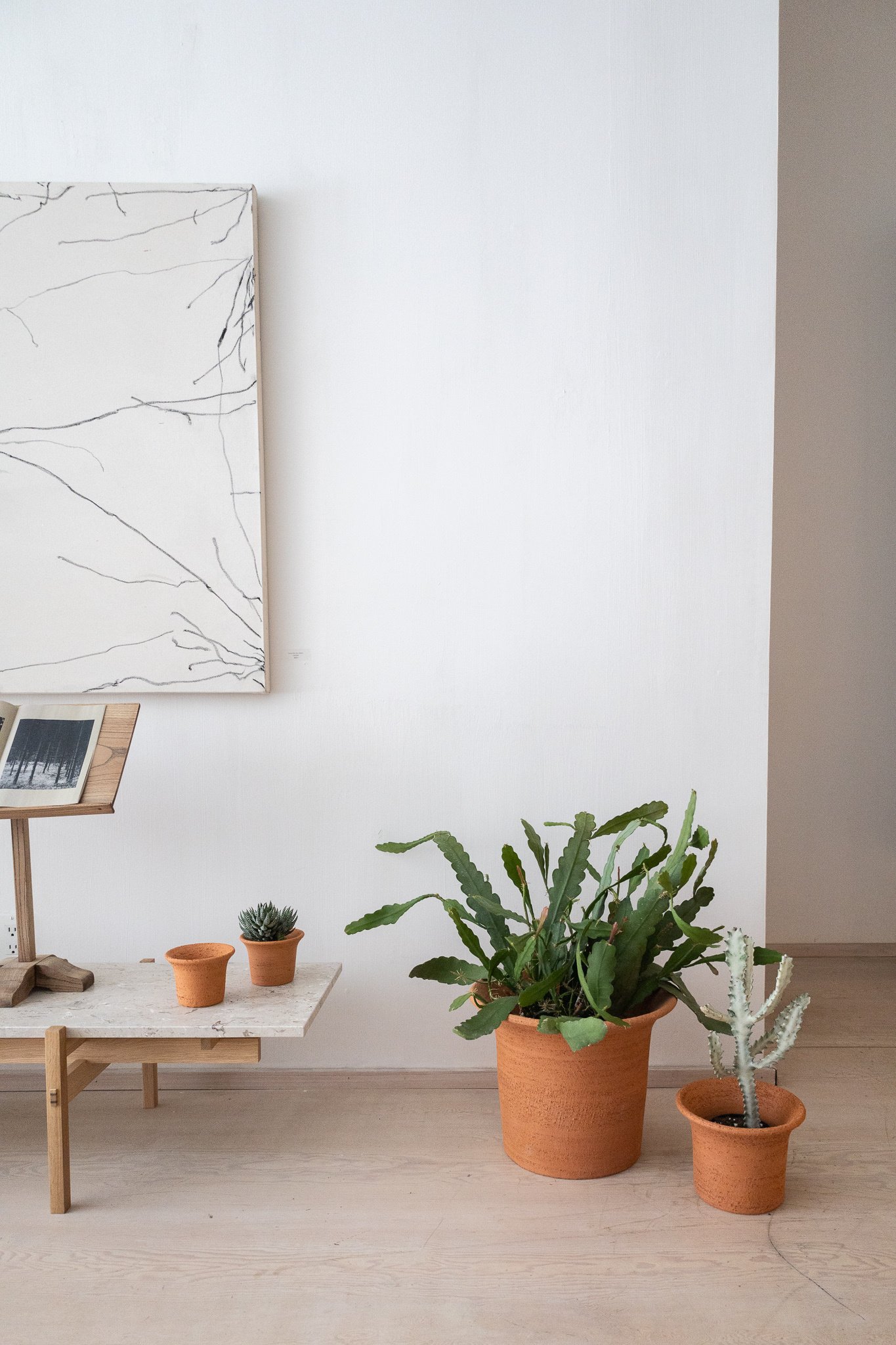 Stockholm-based design and architecture pioneers Claesson Koivisto Rune designed these series of tulip- shaped terracotta planters with the juxtaposition of scale in mind. From the very small to the very large, and everything in between, the planters come in three different sizes and enable the user to hold a variety of different sized plants to form an architectural dialogue when they are placed next to each other.