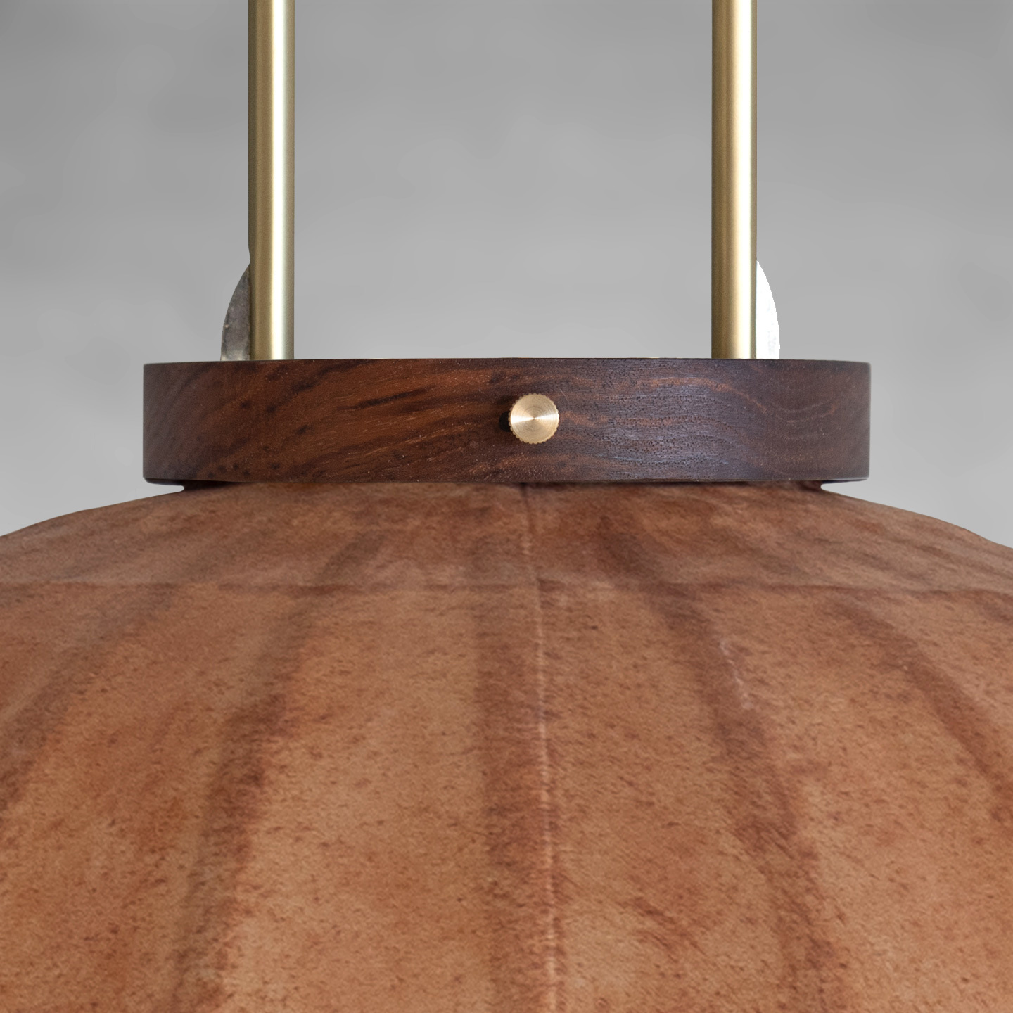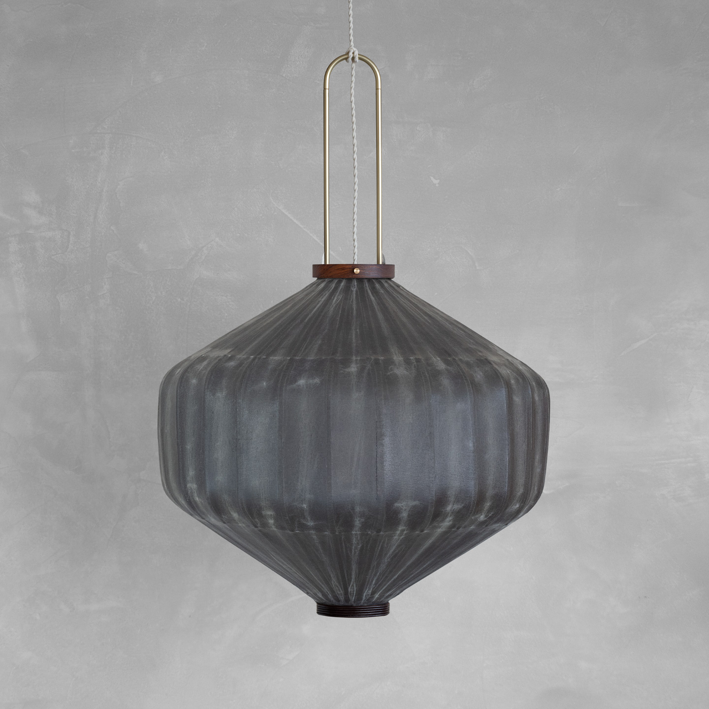 Material Walnut & bamboo frame, Hand-colored TC fabric, Metal pipes & ring, Leather lace.